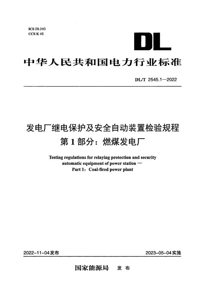 DL/T 2545.1-2022 发电厂继电保护及安全自动装置检验规程 第1部分:燃煤发电厂