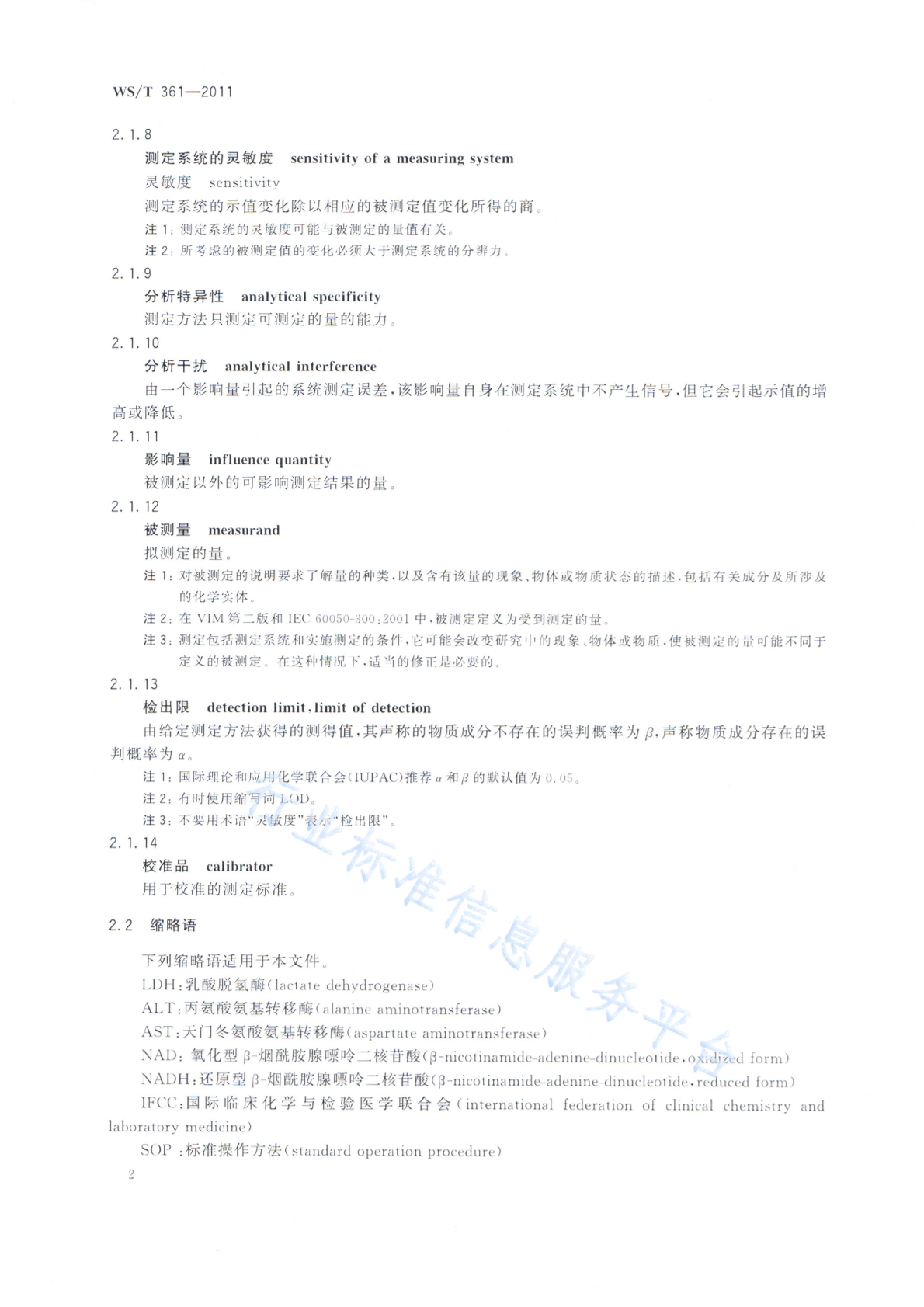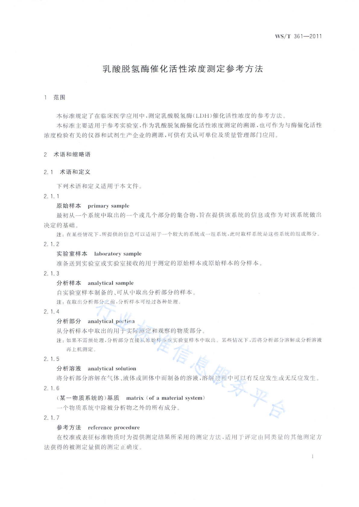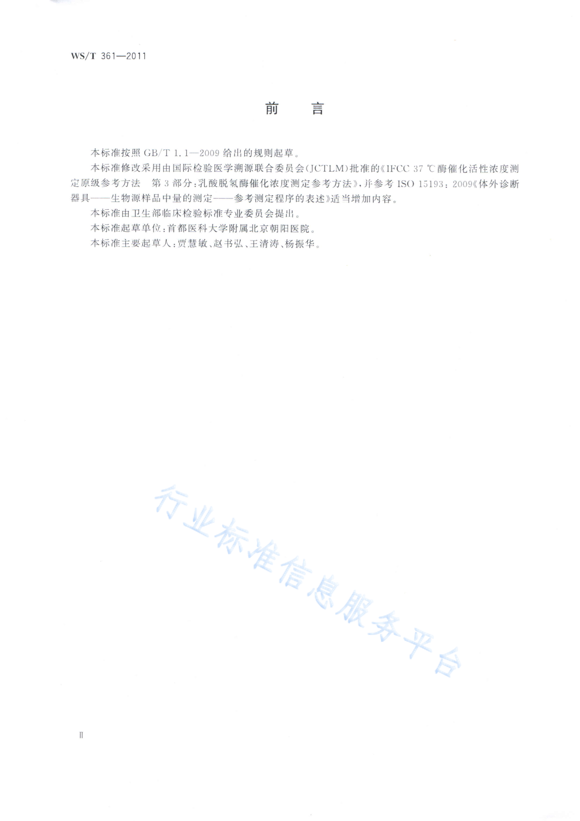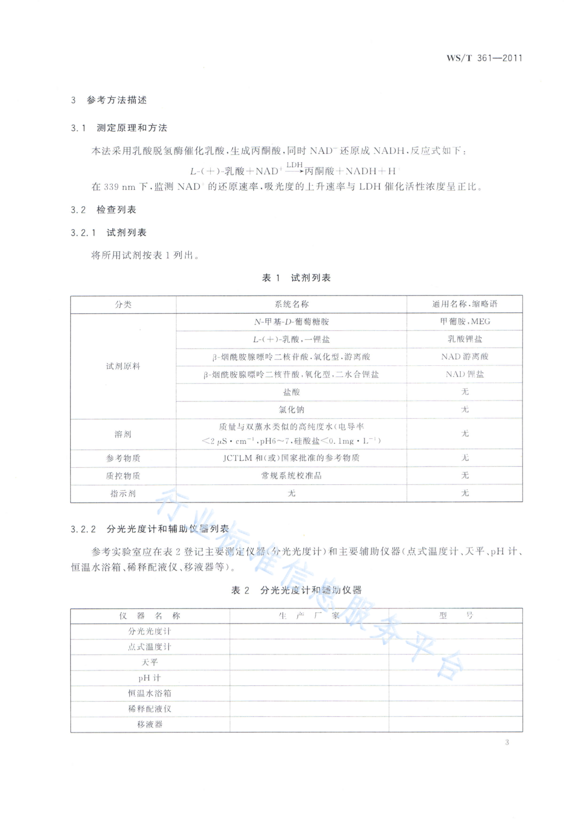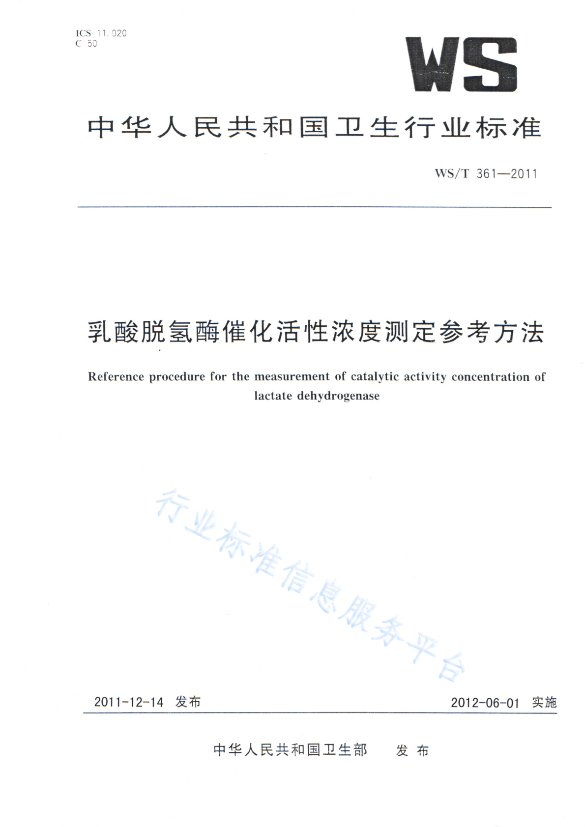 WS/T 361-2011 乳酸脱氢酶催化活性浓度测定参考方法