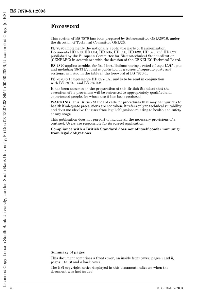 - 2BS 6724:2016 固定敷设用、受火侵袭时烟雾和腐蚀性气体排放量低的额定电压600 1000V和1900 3300V热固性绝缘铠装电缆