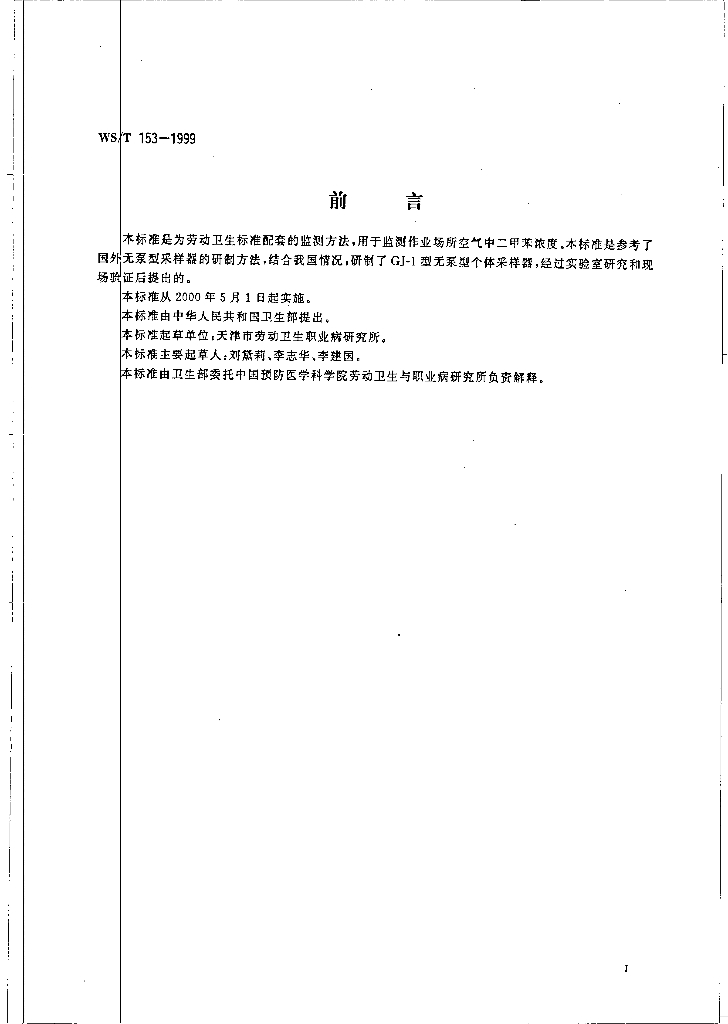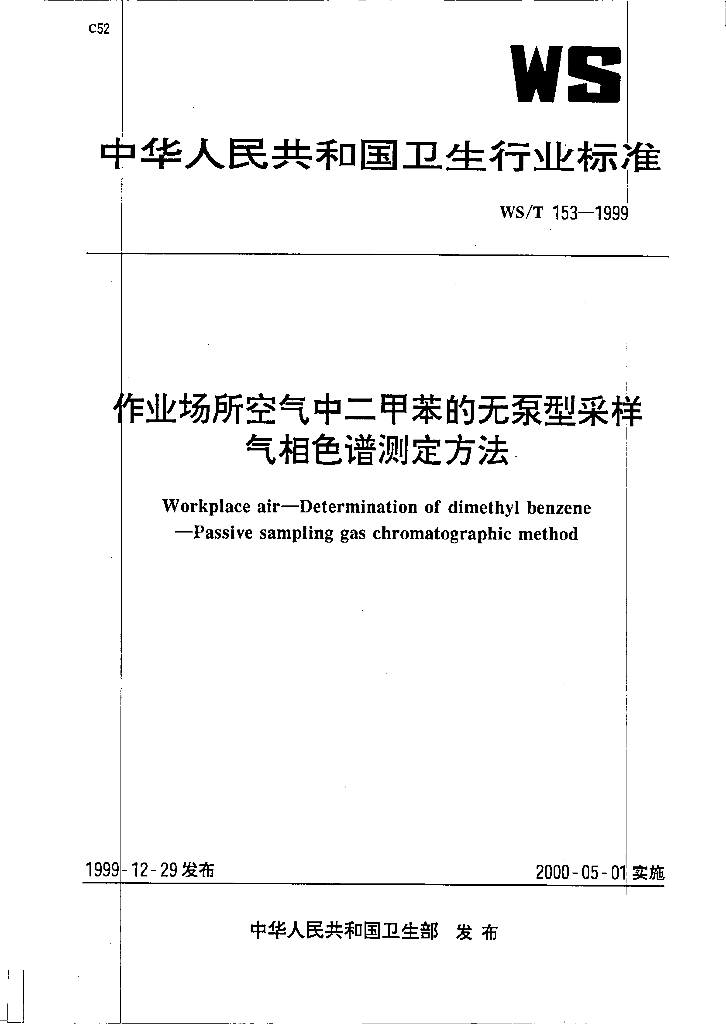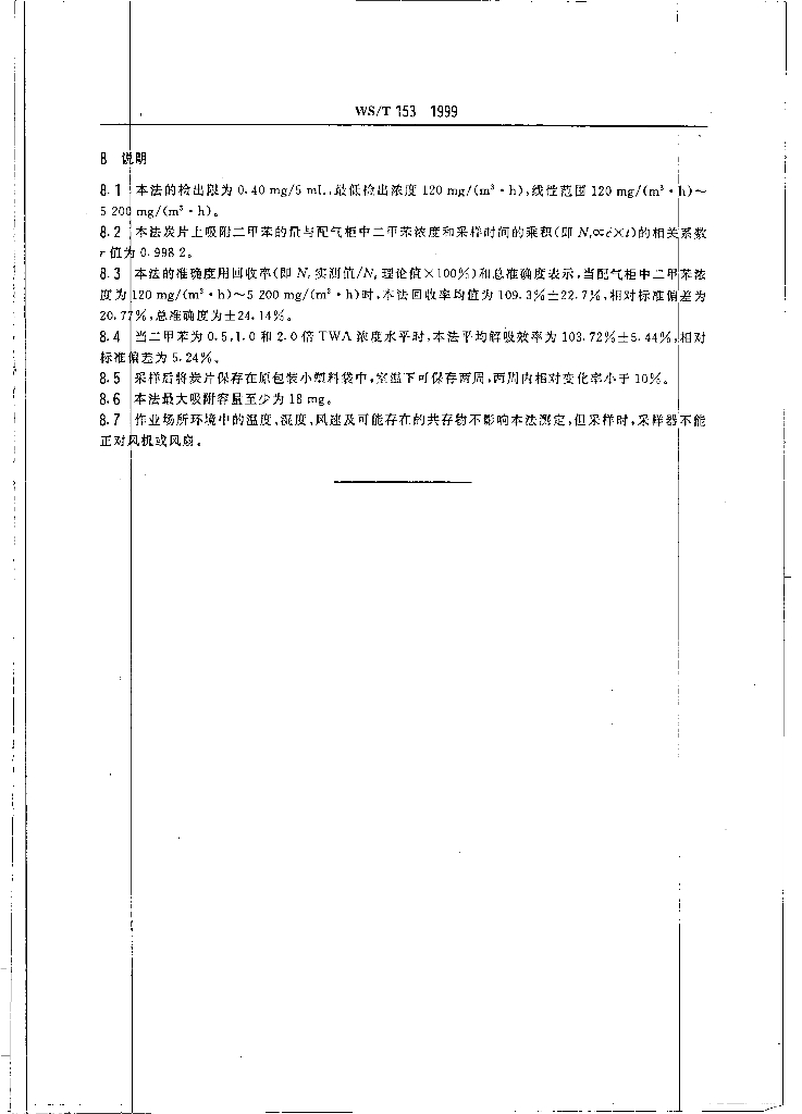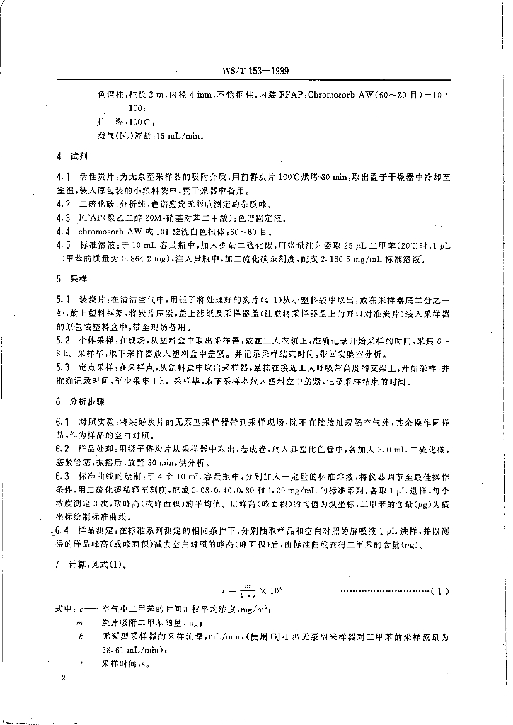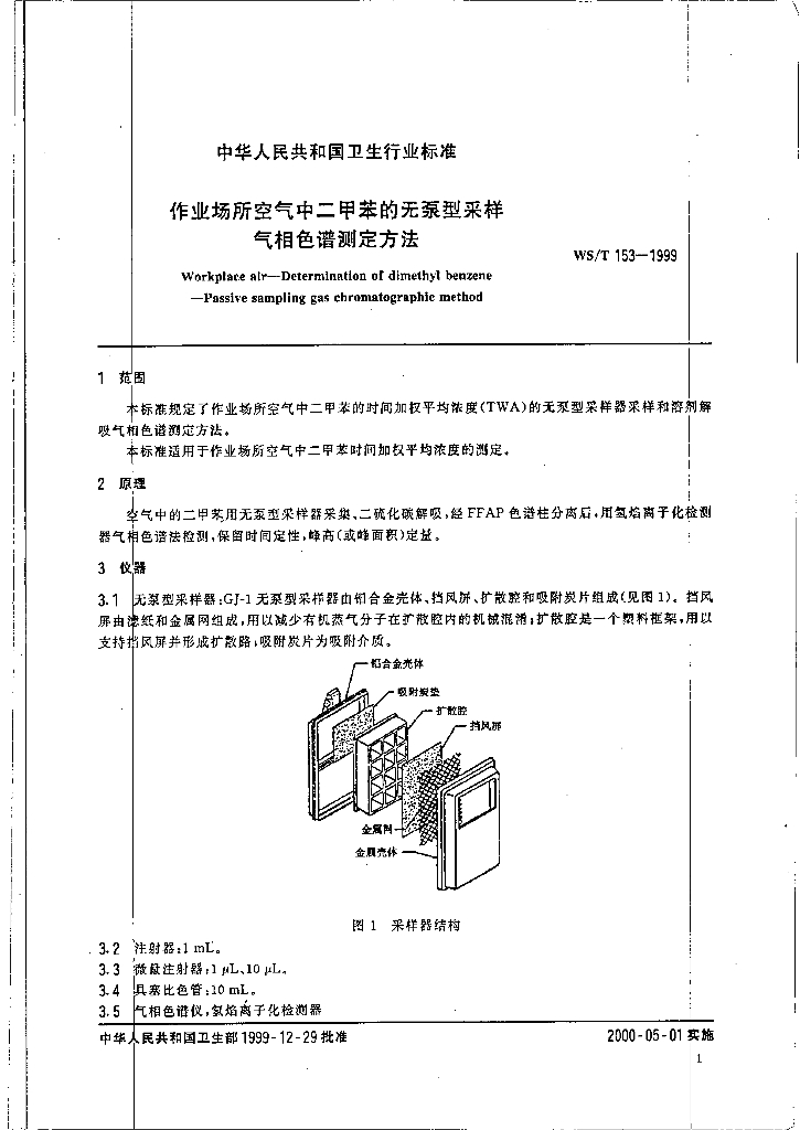 WS/T 153-1999 作业场所空气中二甲苯的无泵采样器气相色谱测定方法