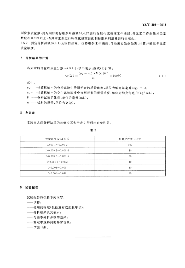 YS/T 898-2013 高纯钽化学分析方法痕量杂质元素的测定电感耦合等离子体质谱法
