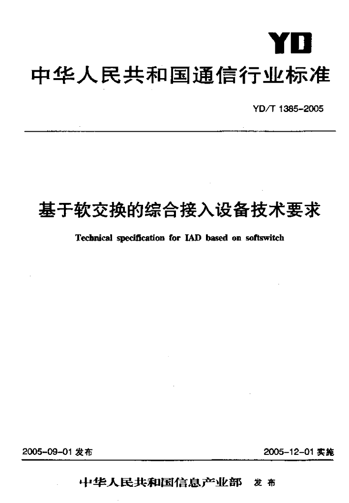 YD/T 1385-2005 基于软交换的综合接入设备技术要求