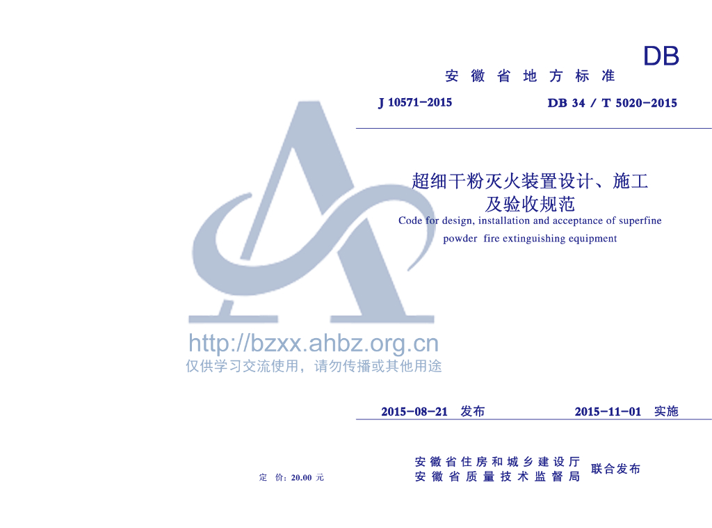 DB34/T 5020-2015 超细干粉灭火装置设计、施工及验收规范