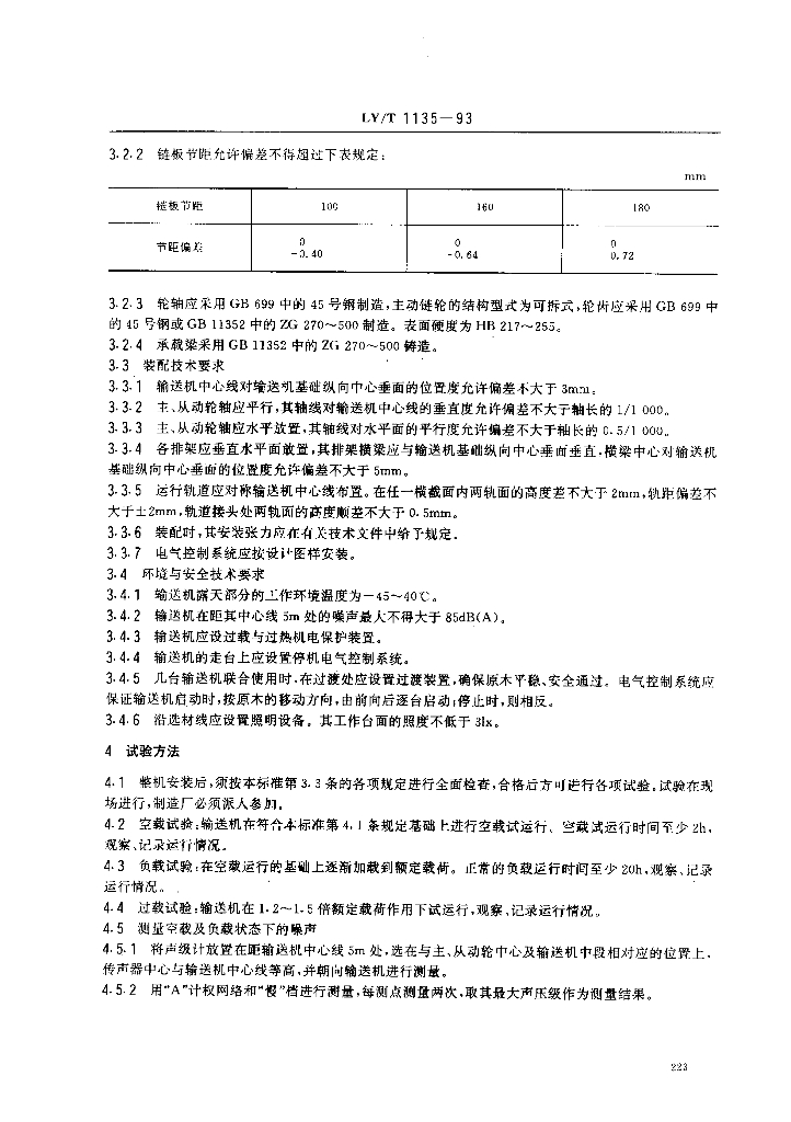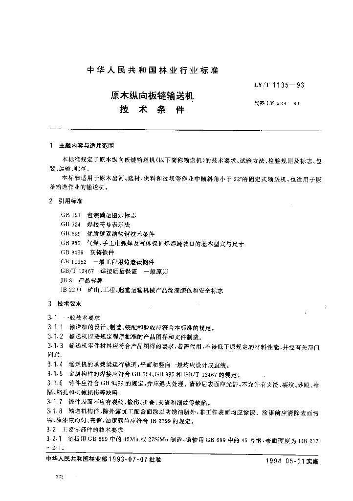 LY/T 1135-1993 原木纵向板链输送机技术条件