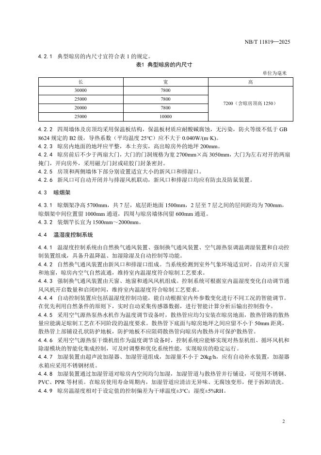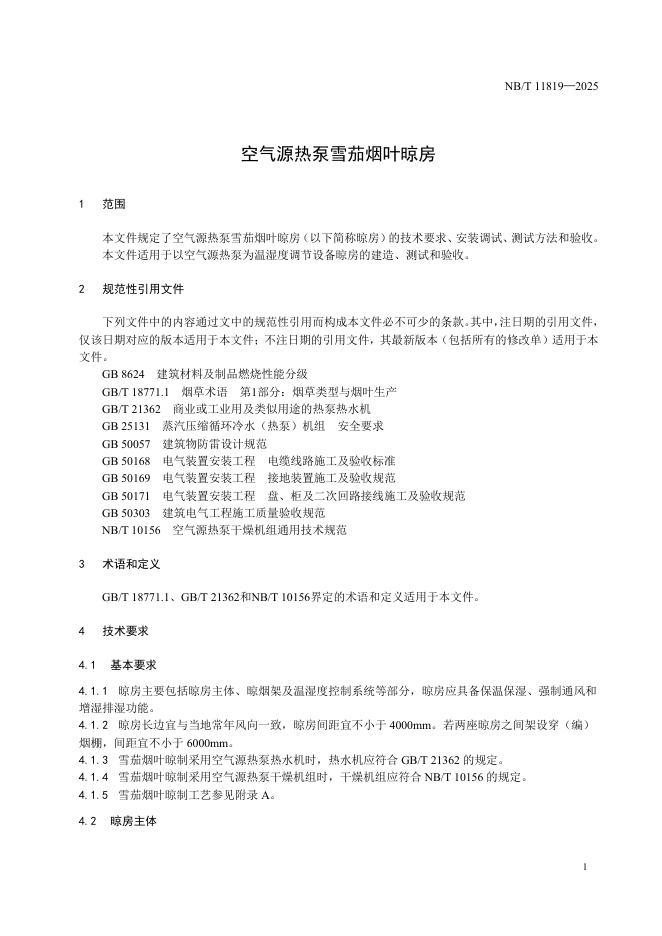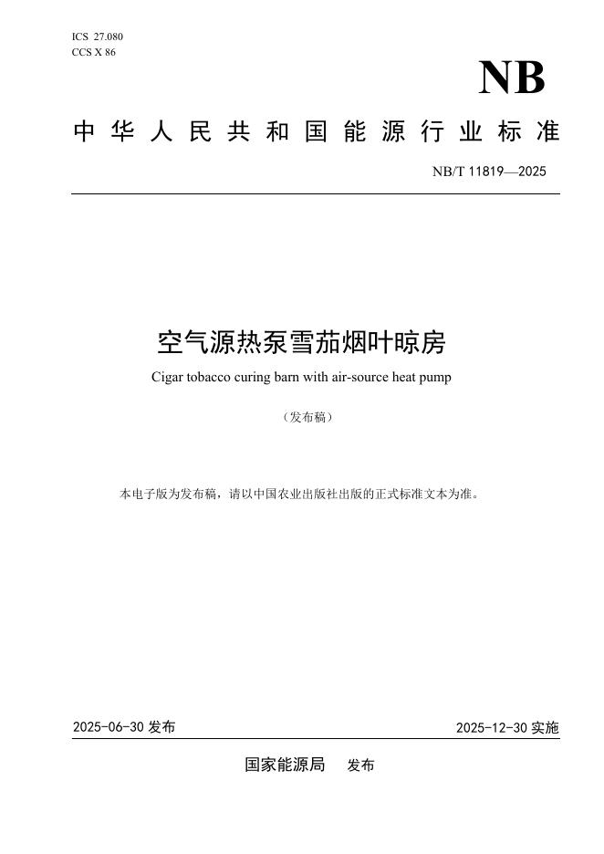 NB/T 11819-2025 空气源热泵雪茄烟叶晾房