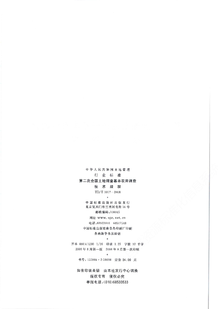 TD/T 1017-2008 第二次全国土地调查基本农田调查技术规程