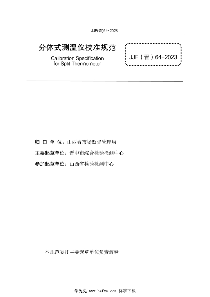 JJF(晋)64-2023 分体式测温仪校准规范