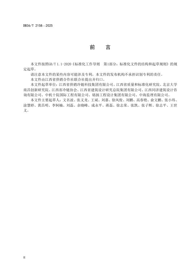 江西省供销冷链科技集团有限公司、江西省质量和标准化研究院、北京大学南昌创新研究院、江西省冷链协会、江西省建筑设计研究总院集团有限公司、江西同济建筑设计咨询有限公司、中机十院国际工程有限公司、铭扬工程设计集团有限公司、中海监理有限公司