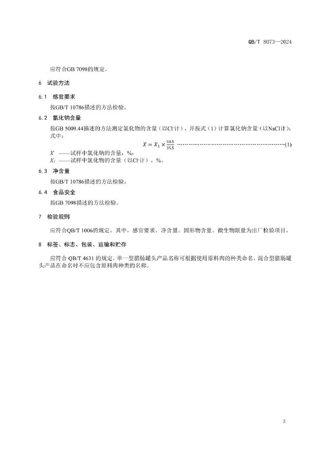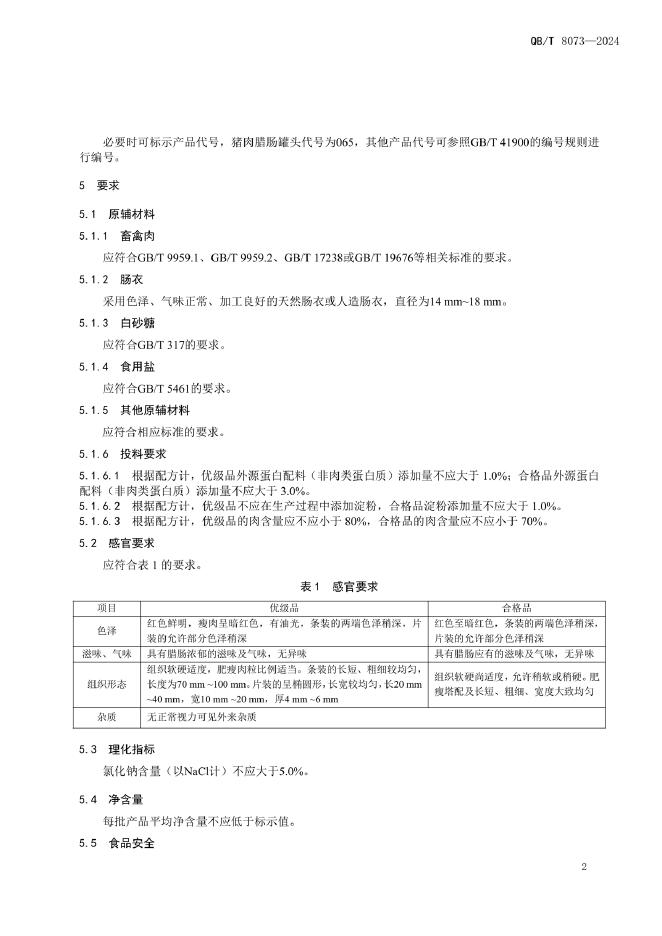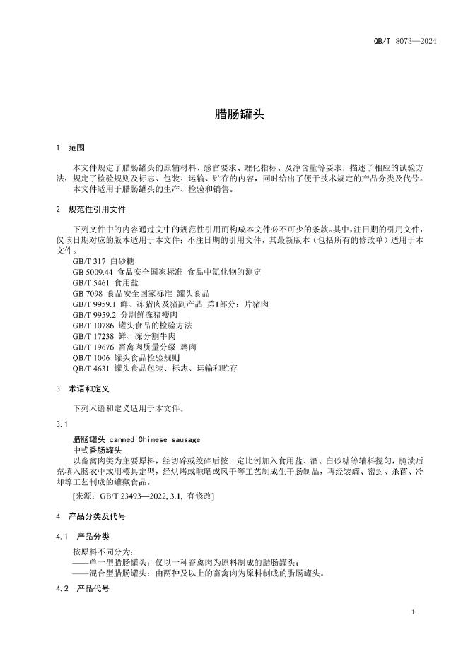 QB/T 8073-2024 腊肠罐头