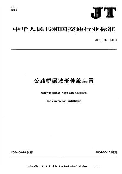 JT/T 502-2004 公路桥梁波形伸缩装置