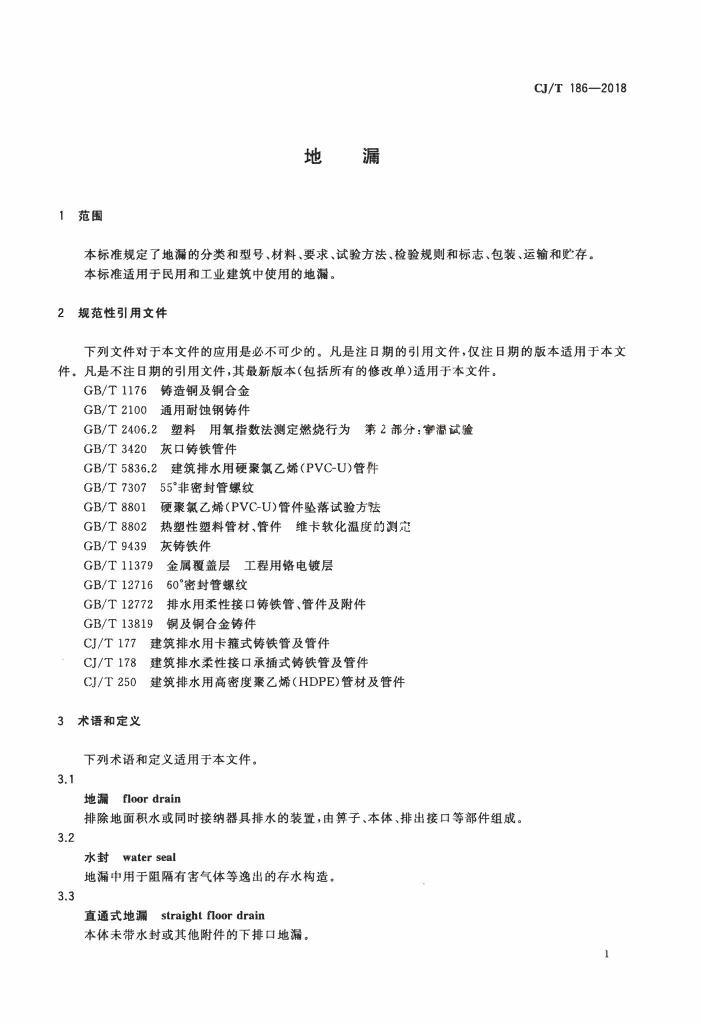CJ/T 186-2018 地漏