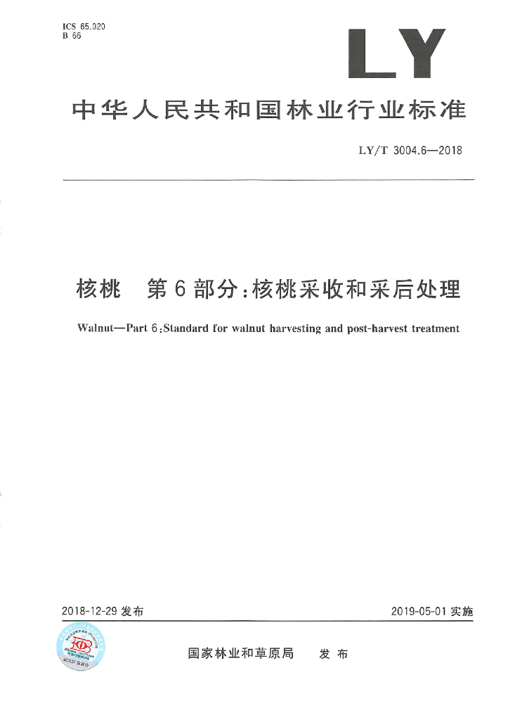 LY/T 3004.6-2018 核桃 第6部分:核桃采收和采后处理
