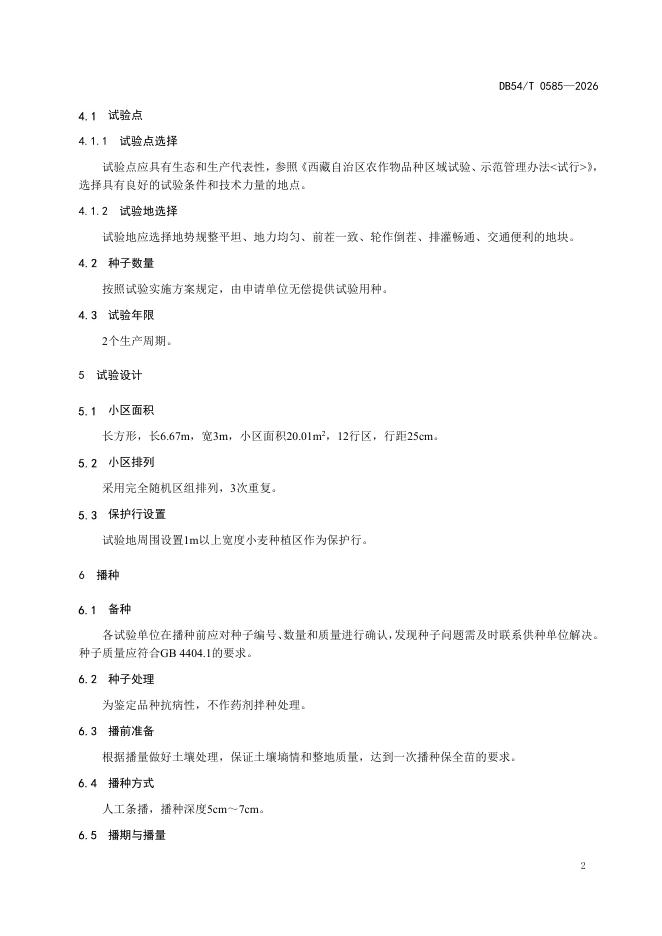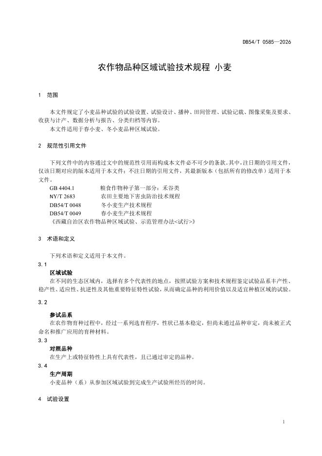 DB54/T 0585-2026 农作物品种区域试验技术规程 小麦