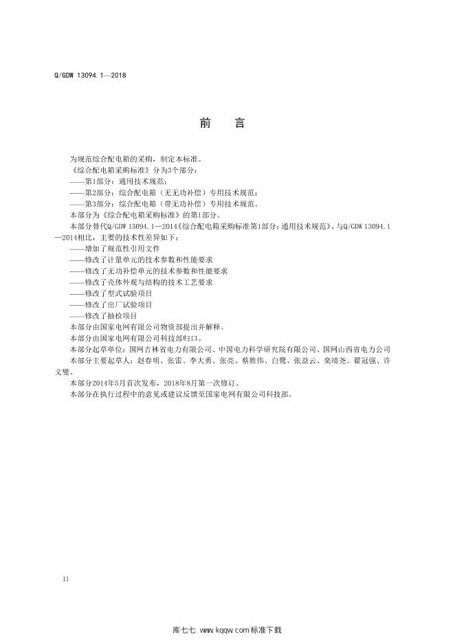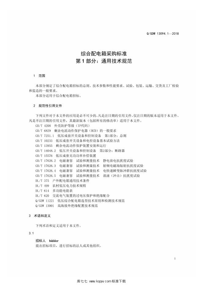 Q/GDW 13094.1-2018 综合配电箱采购标准 第1部分:通用技术规范
