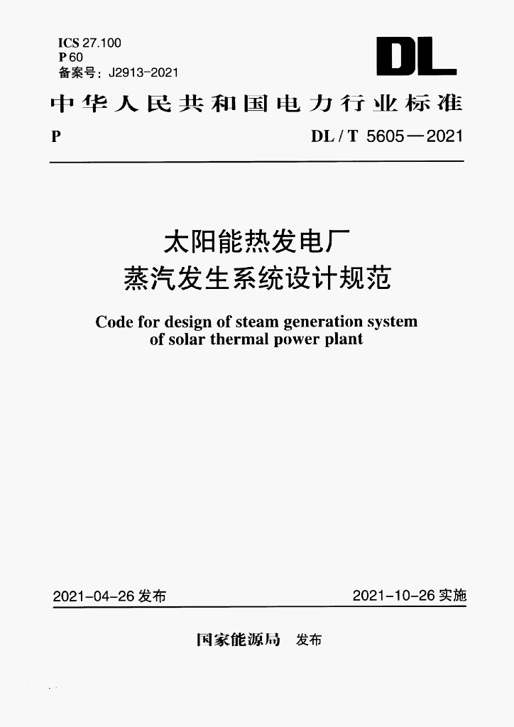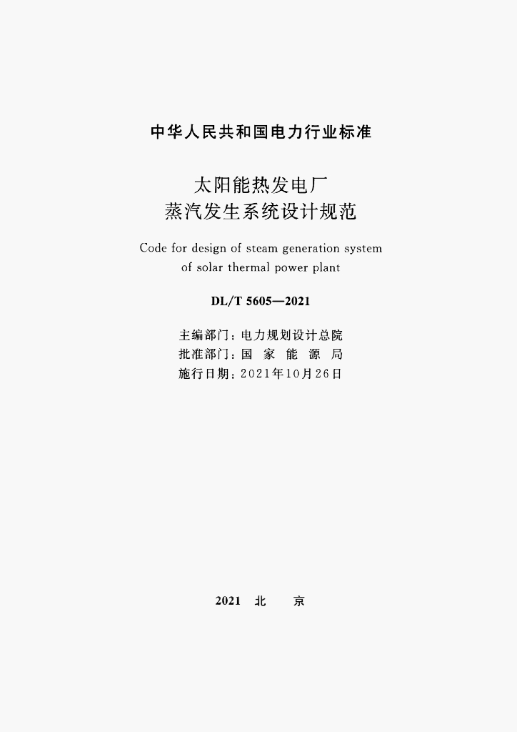 DL/T 5605-2021 太阳能热发电厂蒸汽发生系统设计规范