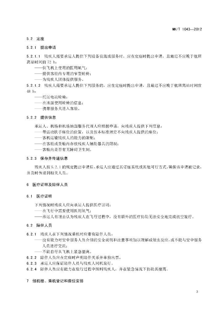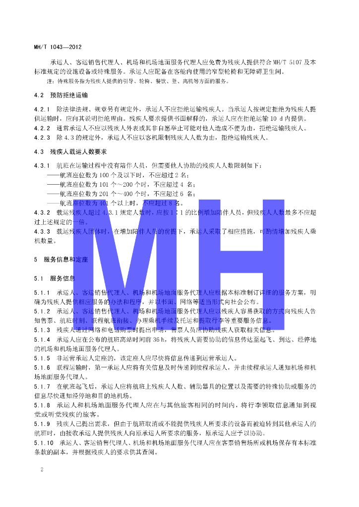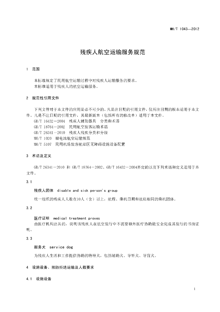 MH/T 1043-2012 残疾人航空运输服务规范