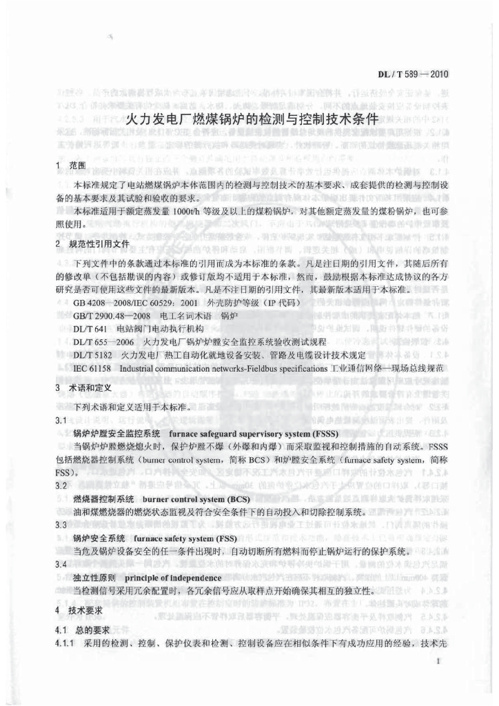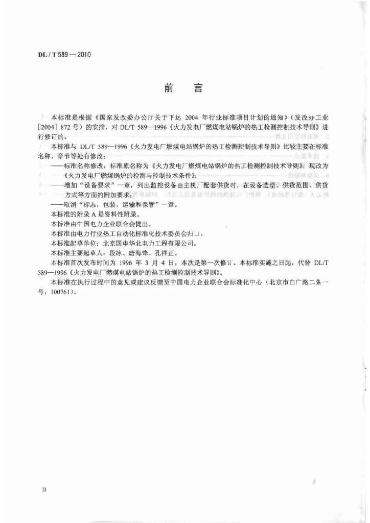 DL/T 589-2010 火力发电厂燃煤锅炉的检测与控制技术条件