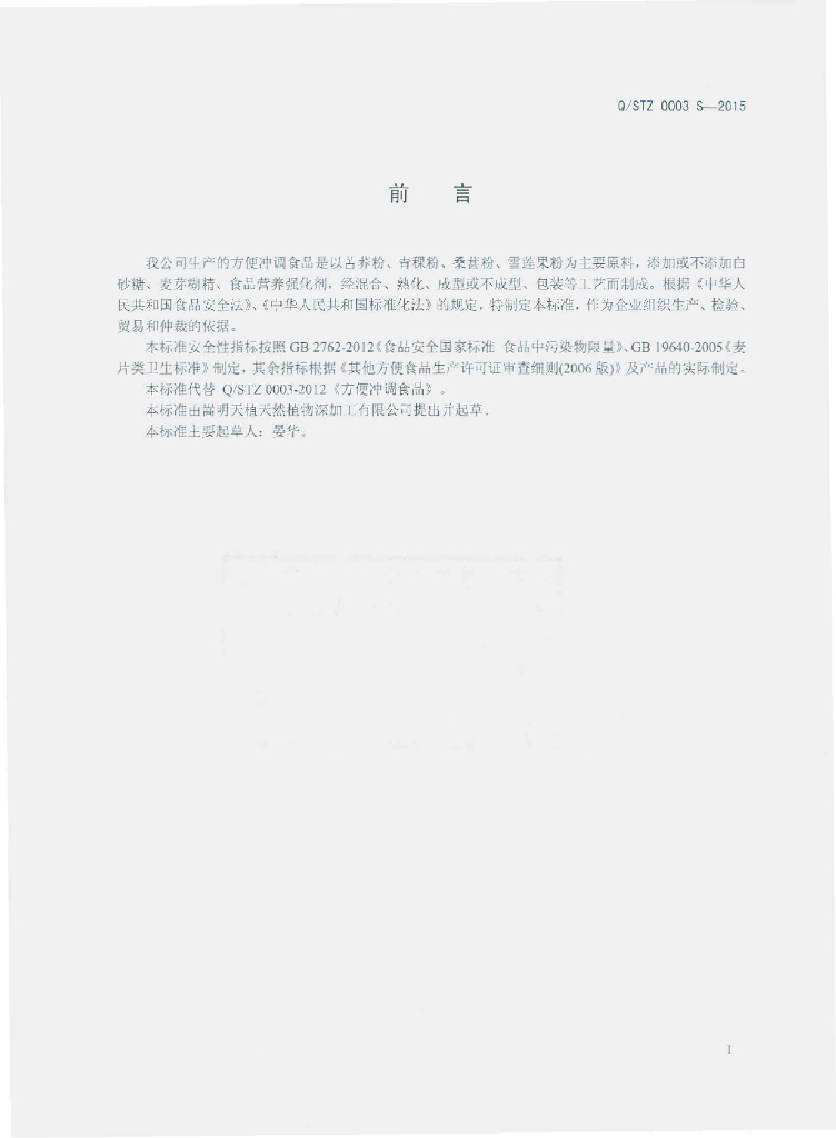 Q/STZ 0003S-2015 嵩明天植天然植物深加工有限公司 方便冲调食品