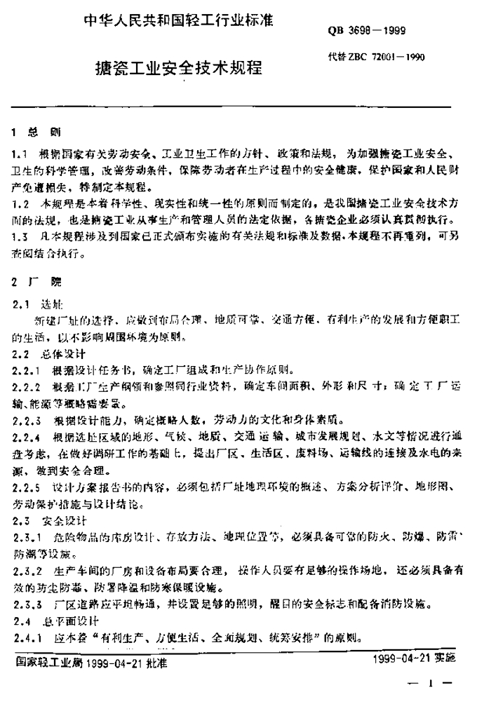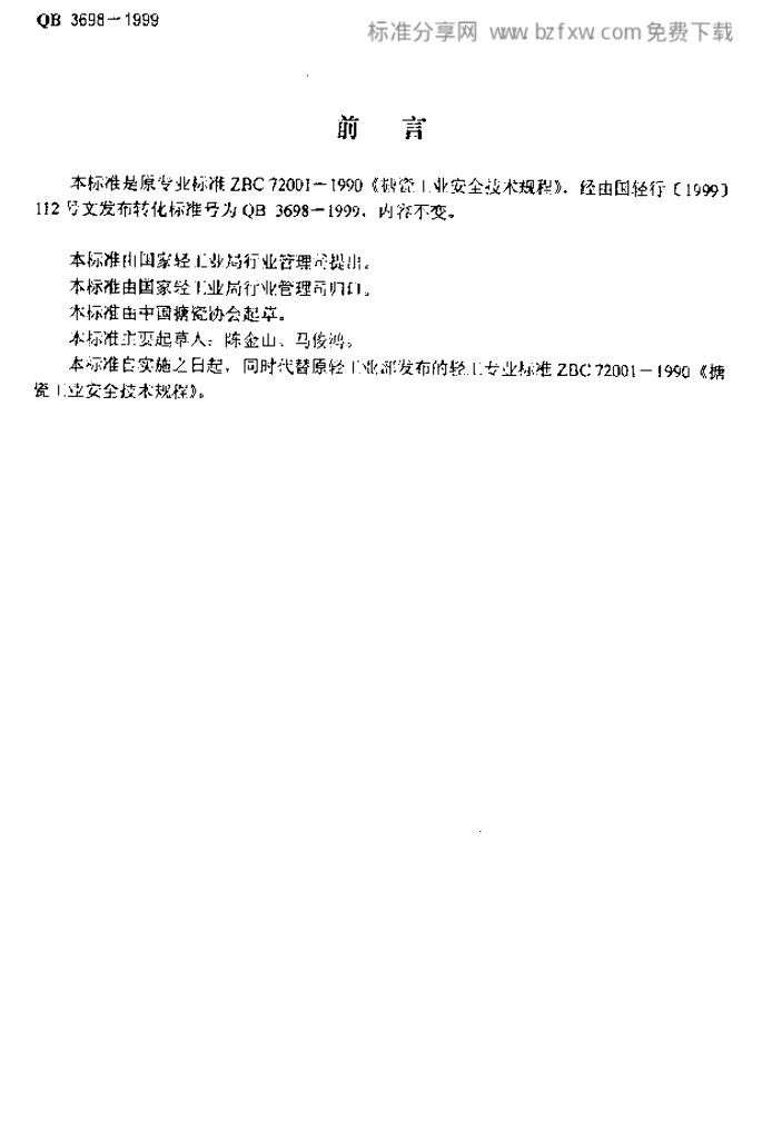 QB 3698-1999 搪瓷工业安全技术规程