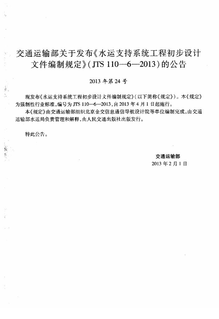 北京金交信息通信导航设计院、交通运输部规划研究院、中交水运规划设计院有限公司、中国交通建设股份有限公司、大连海事大学、北京圣华安造价师事务所有限公司、交通运输部海事局、天津海事局、广西海事局