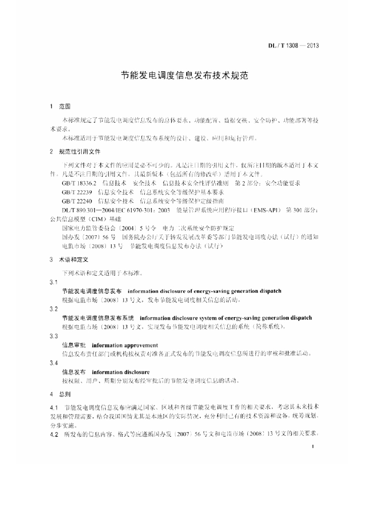 DL/T 1308-2013 节能发电调度信息发布技术规范