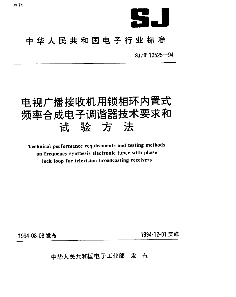 SJ/T 10525-1994 电视广播接收机用锁相环内置式频率合成电子调谐器技术要求和试验方法
