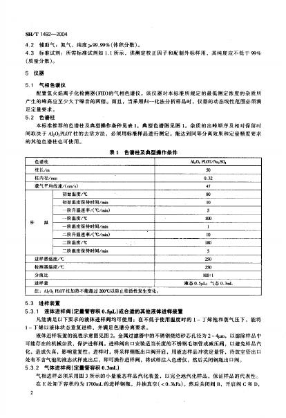 SH/T 1492-1992 工业用1-丁烯纯度及烃类杂质测定(气相色谱法)