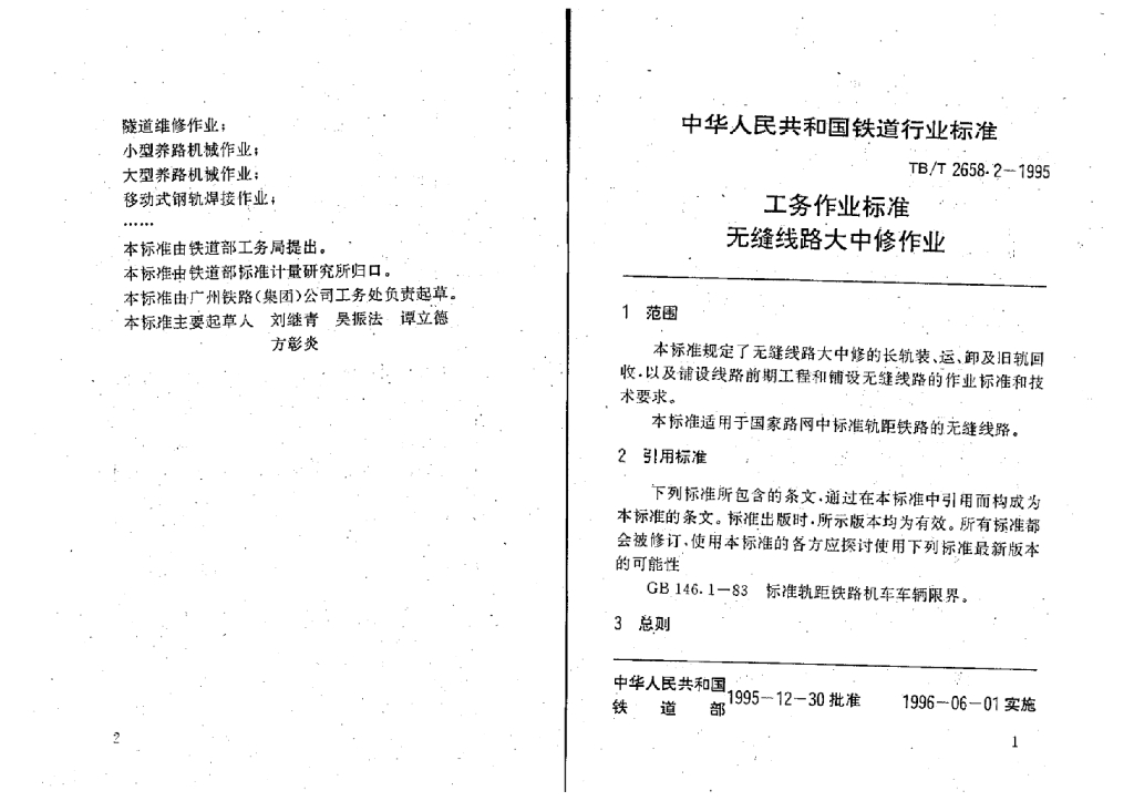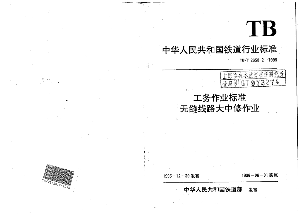 TB/T 2658.2-1995 工务作业标准无缝线路大中修作业