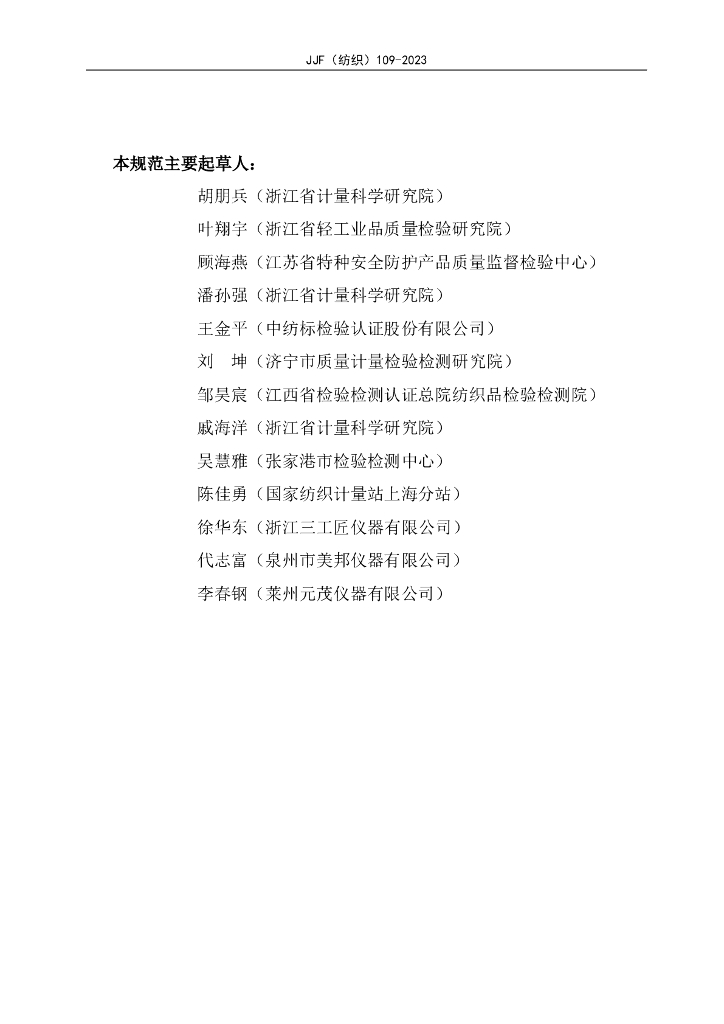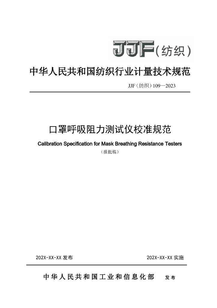 JJF(纺织)109-2023 口罩呼吸阻力测试仪校准规范(报批稿)
