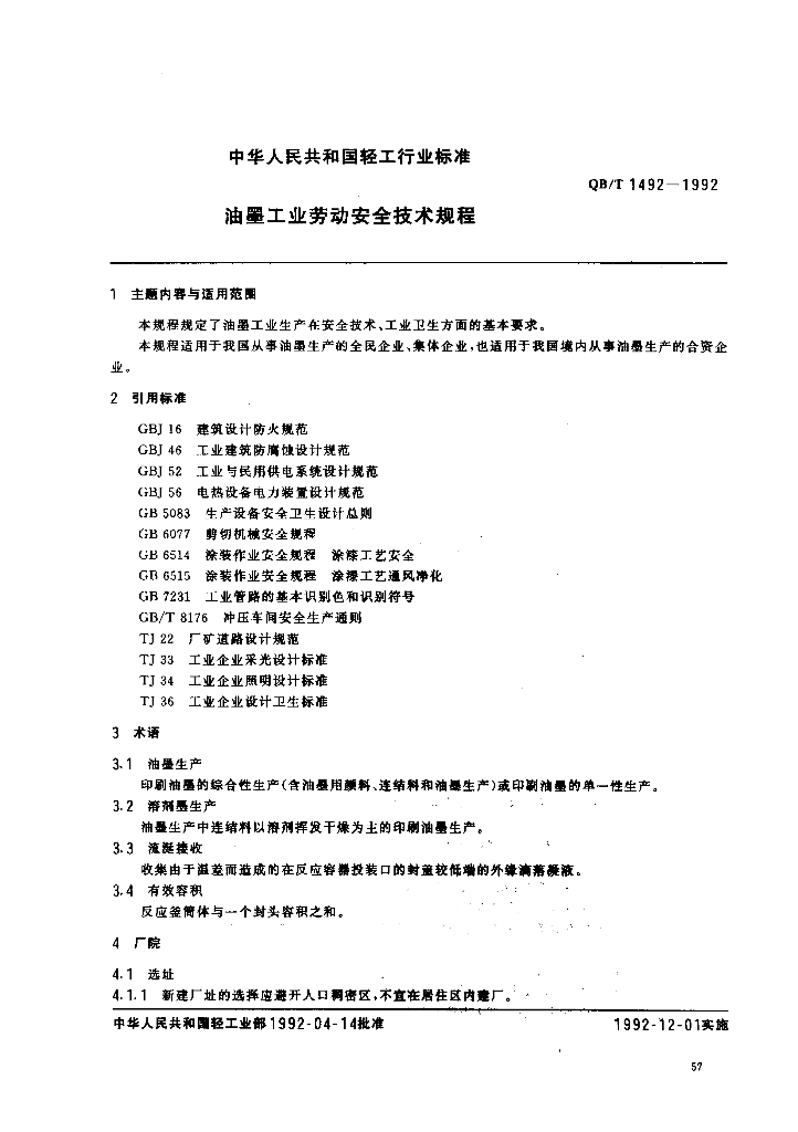 QB/T 1492-1992 油墨工业劳动安全技术规程
