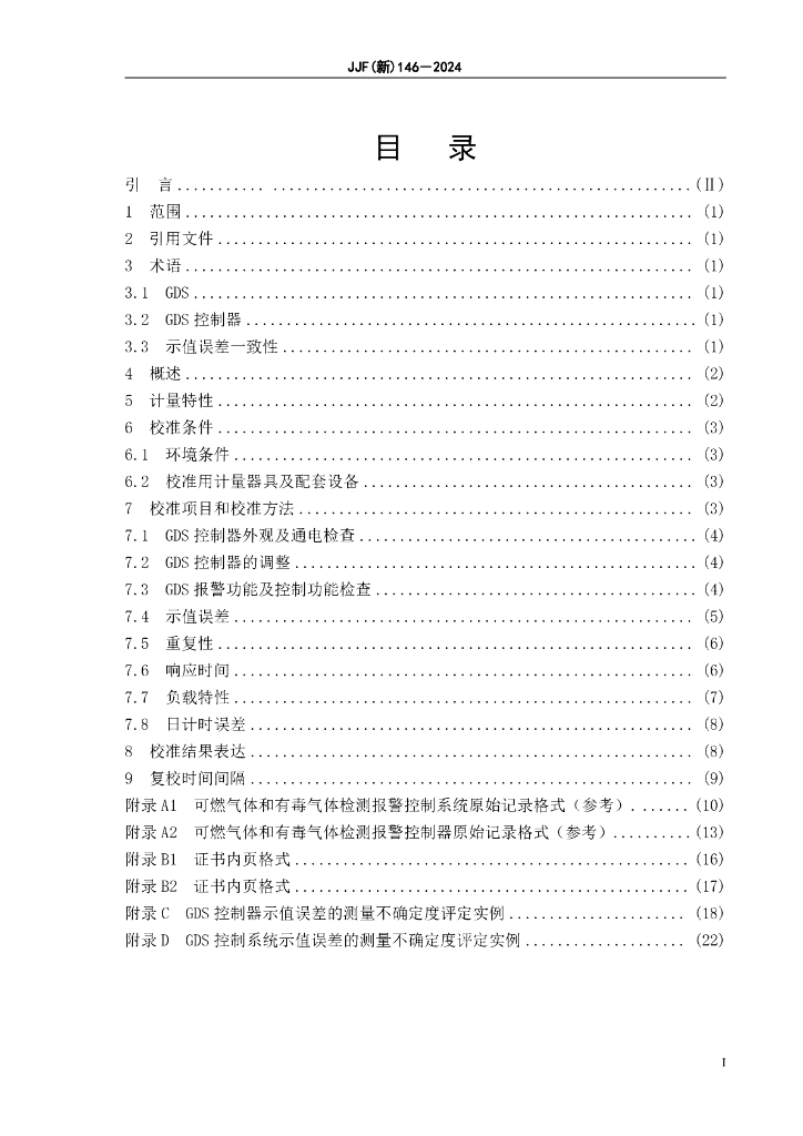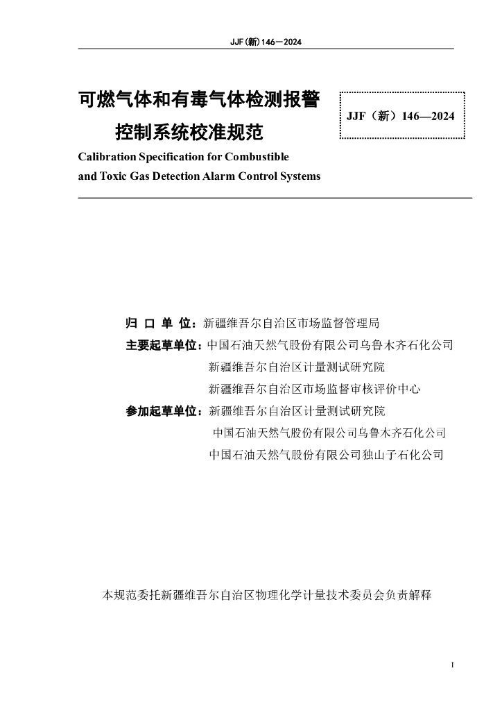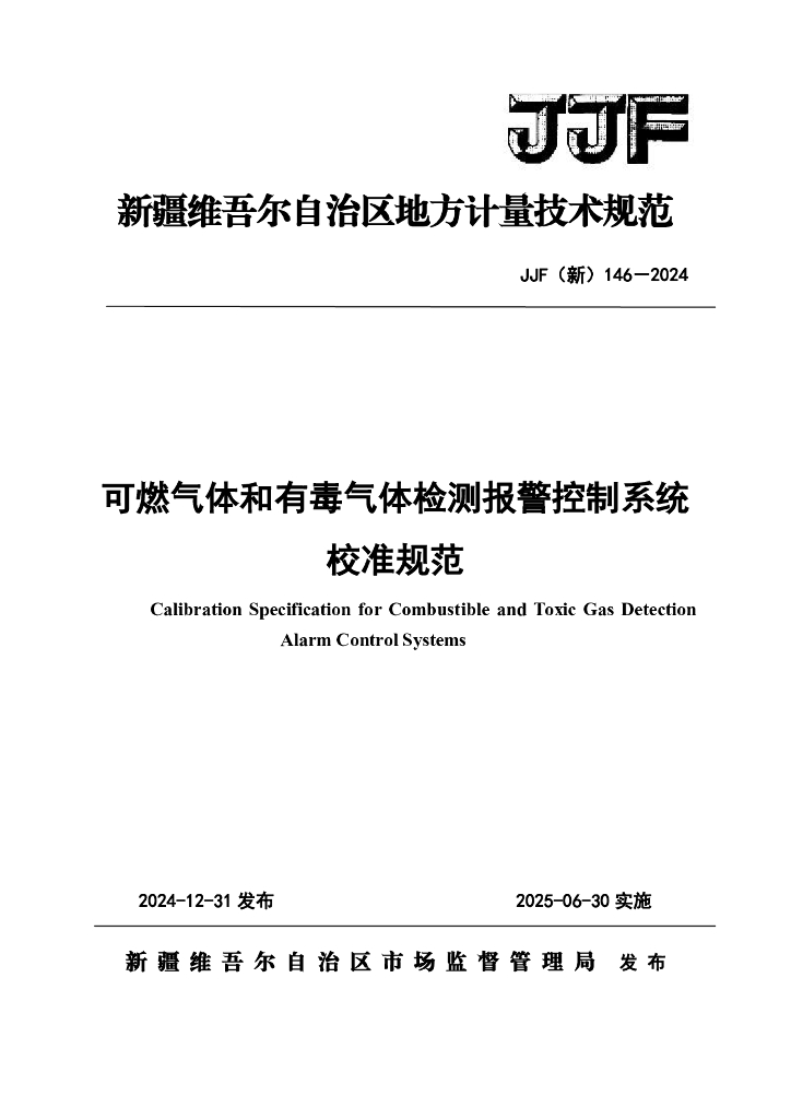 JJF(新)146-2024 可燃气体和有毒气体检测报警控制系统校准规范