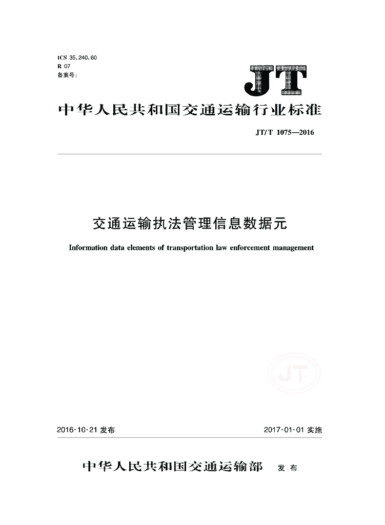 JT/T 1075-2016 交通运输执法管理信息数据元