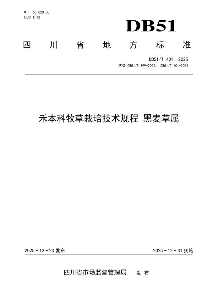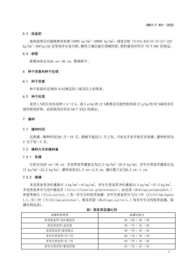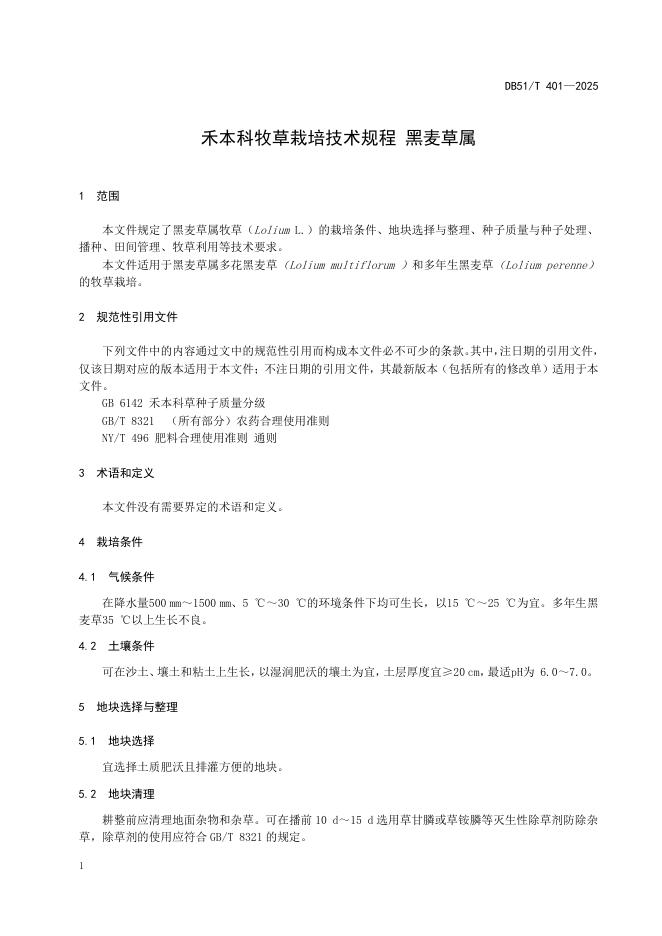 DB51/T 401-2025 禾本科牧草栽培技术规程 黑麦草属