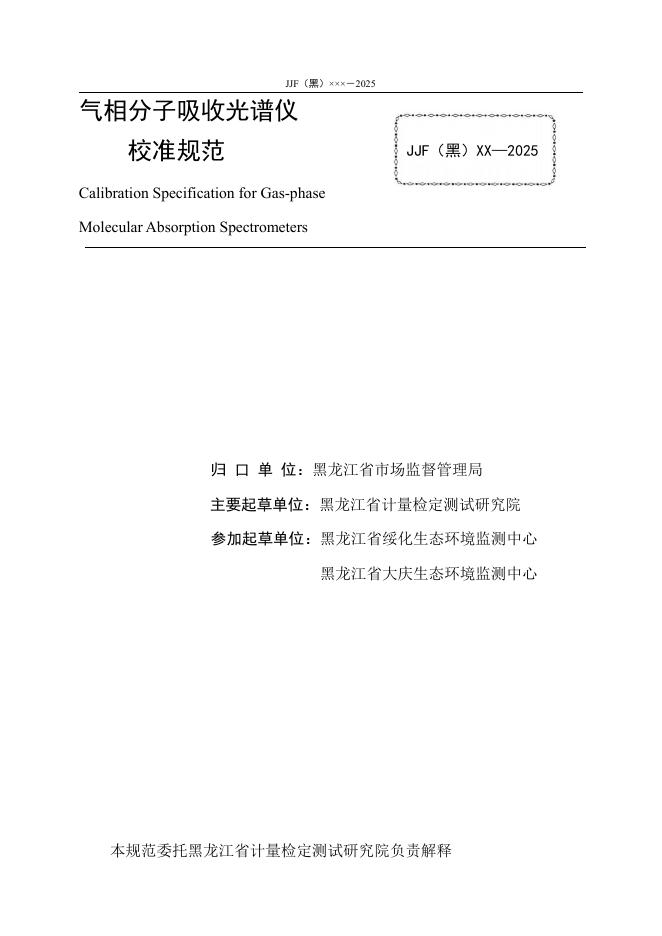 JJG(黑)XX-XXXX 气相分子吸收光谱仪校准规范(审定稿)