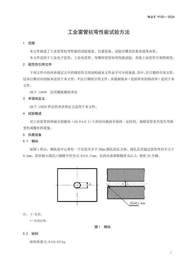 WJ/T 9105-2024 工业雷管抗弯性能试验方法