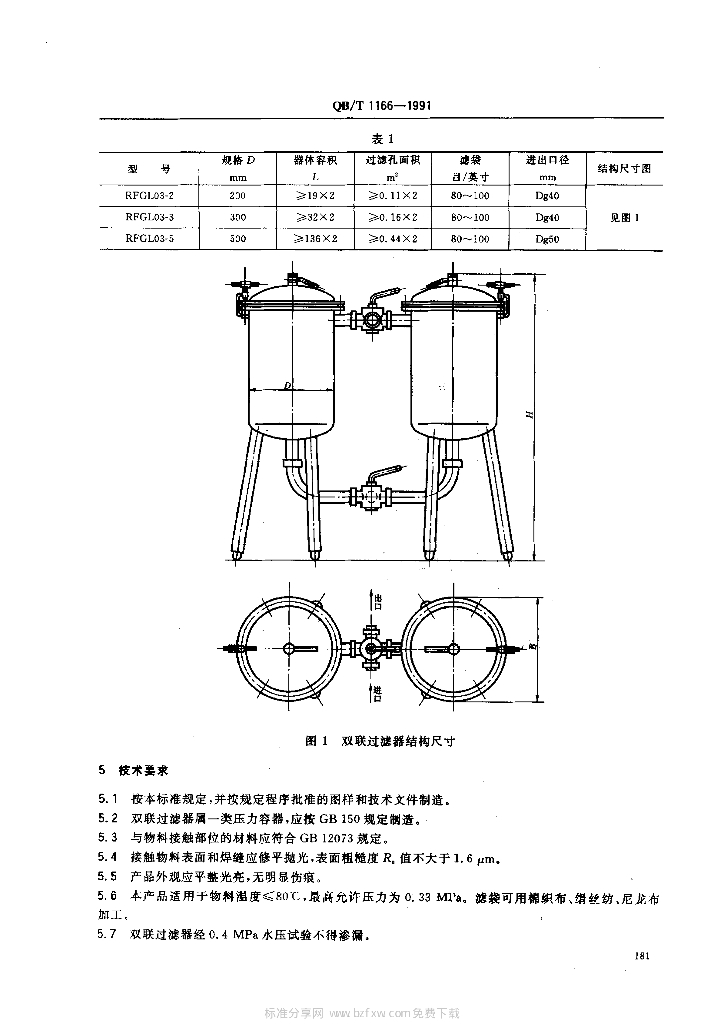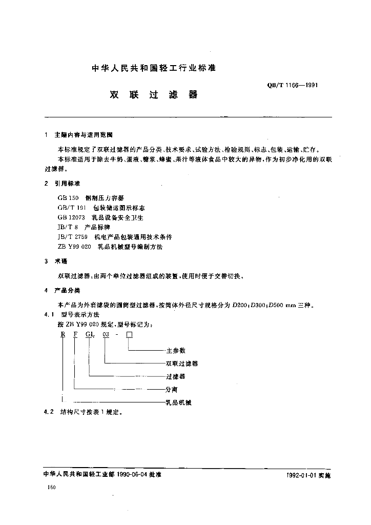 QB/T 1166-1991 双联过滤器