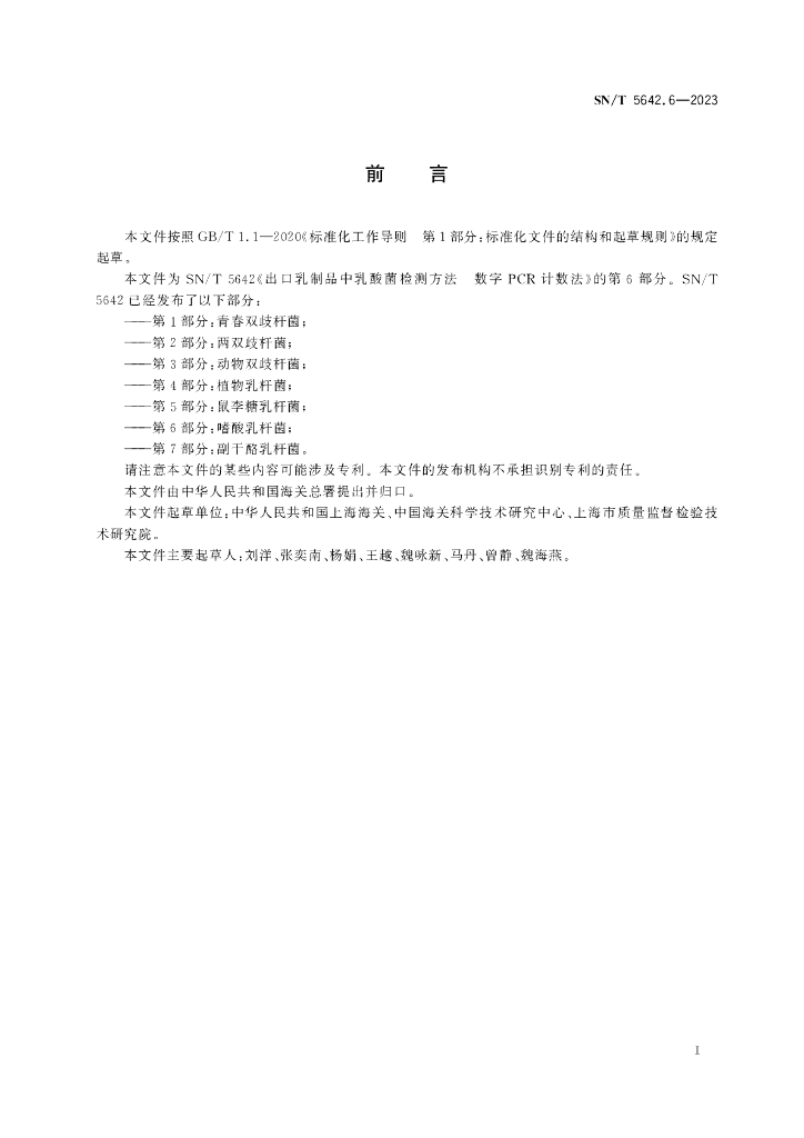 SN/T 5642.6-2023 出口乳制品中乳酸菌检测方法 数字PCR计数法 第6部分:嗜酸乳杆菌