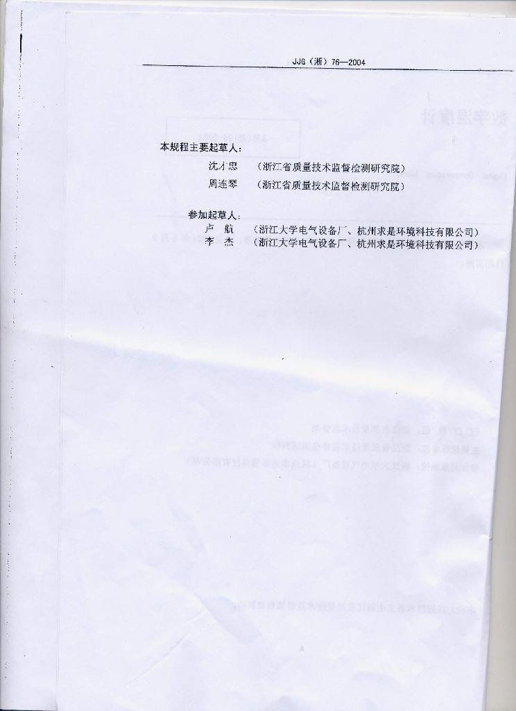 沈才忠(浙江省质量技术监督检测研究院)、周连琴(浙江省质量技术监督检测研究院)、卢航(浙江大学电气设备厂、杭州求是环境科技有限公司)、李杰(浙江大学电气设备厂、杭州求是环境科技有限公司)