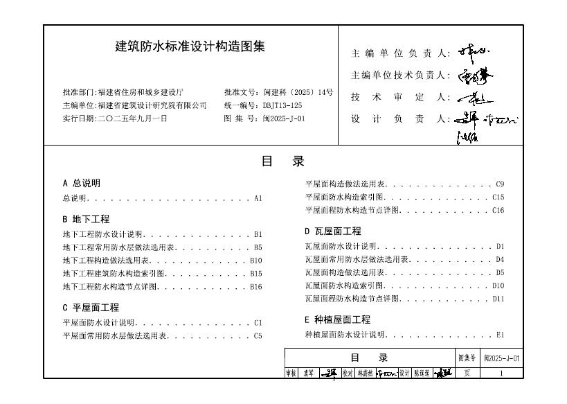 闽2025-J-01 建筑防水标准设计构造图集(DBJT13-125)