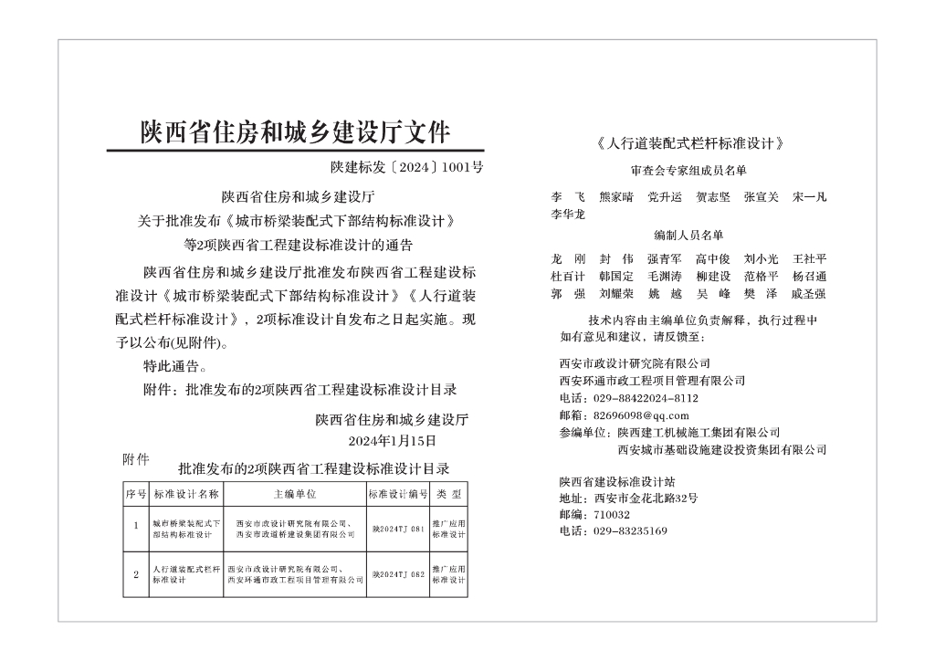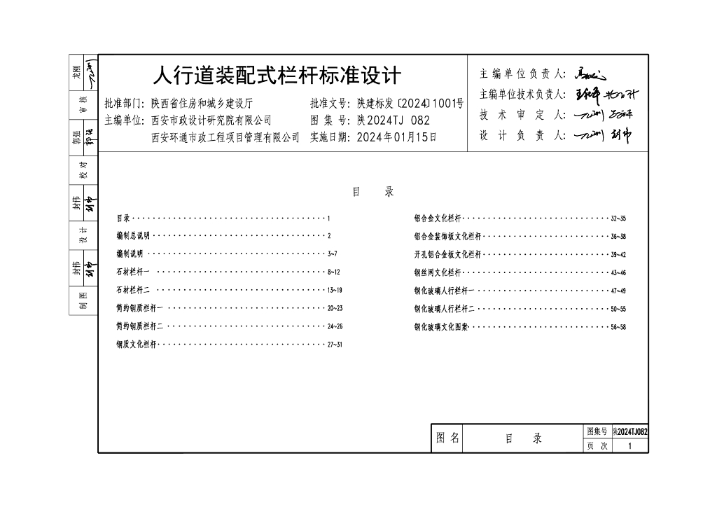 陕2024TJ 082 人行道装配式栏杆标准设计图集