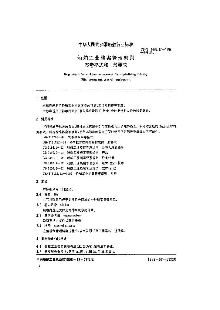 CB/T 3495.17-1998 船舶工业档案管理规则案卷格式和一般要求