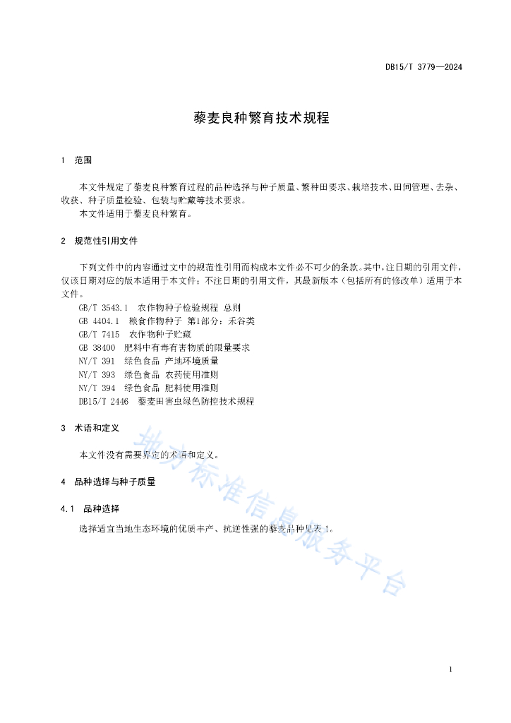 DB15/T 3779-2024 藜麦良种繁育技术规程
