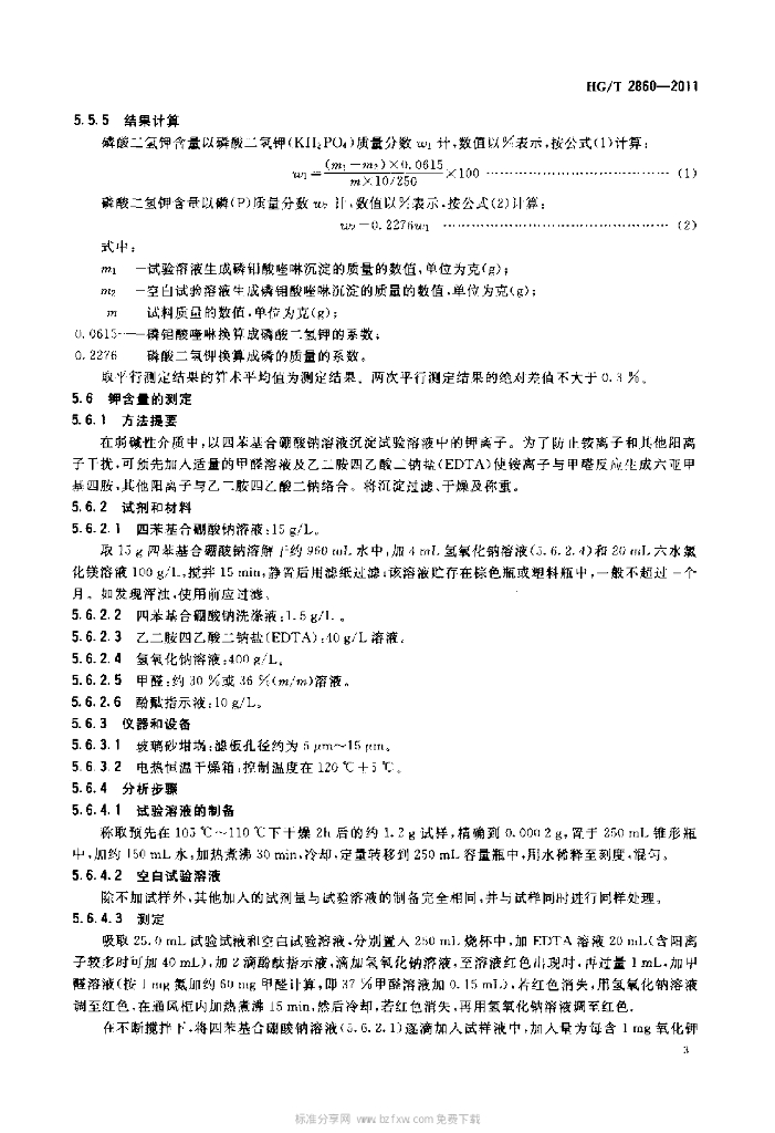 HG/T 2860-2011 饲料级 磷酸二氢钾