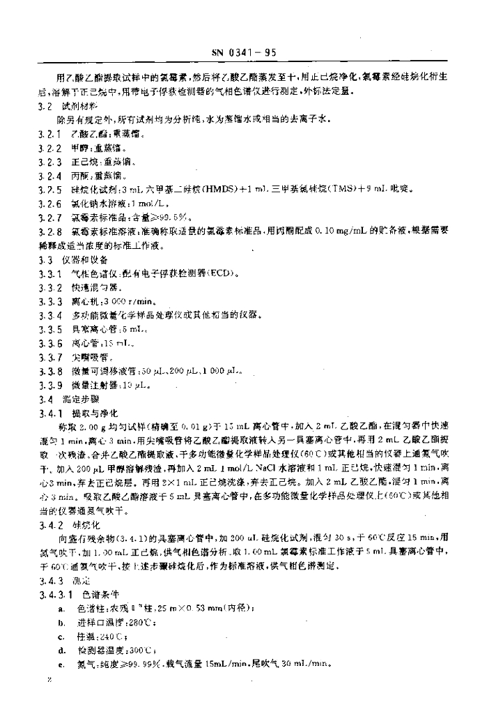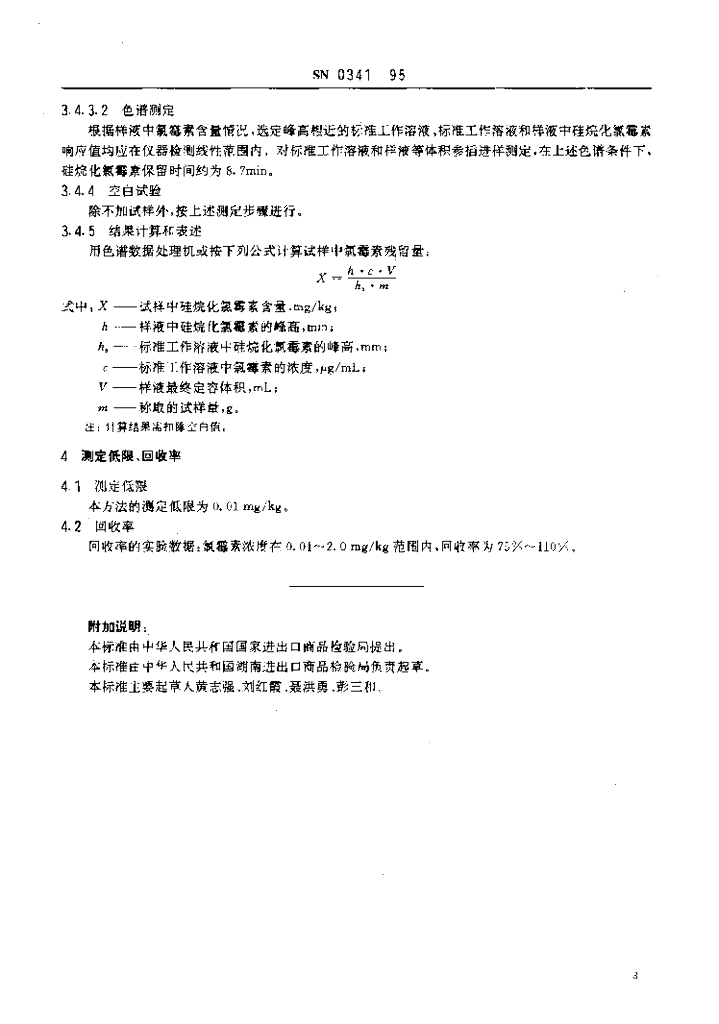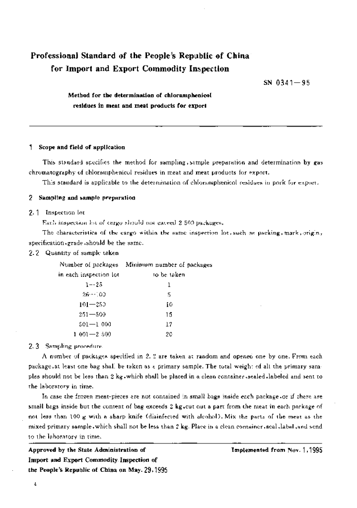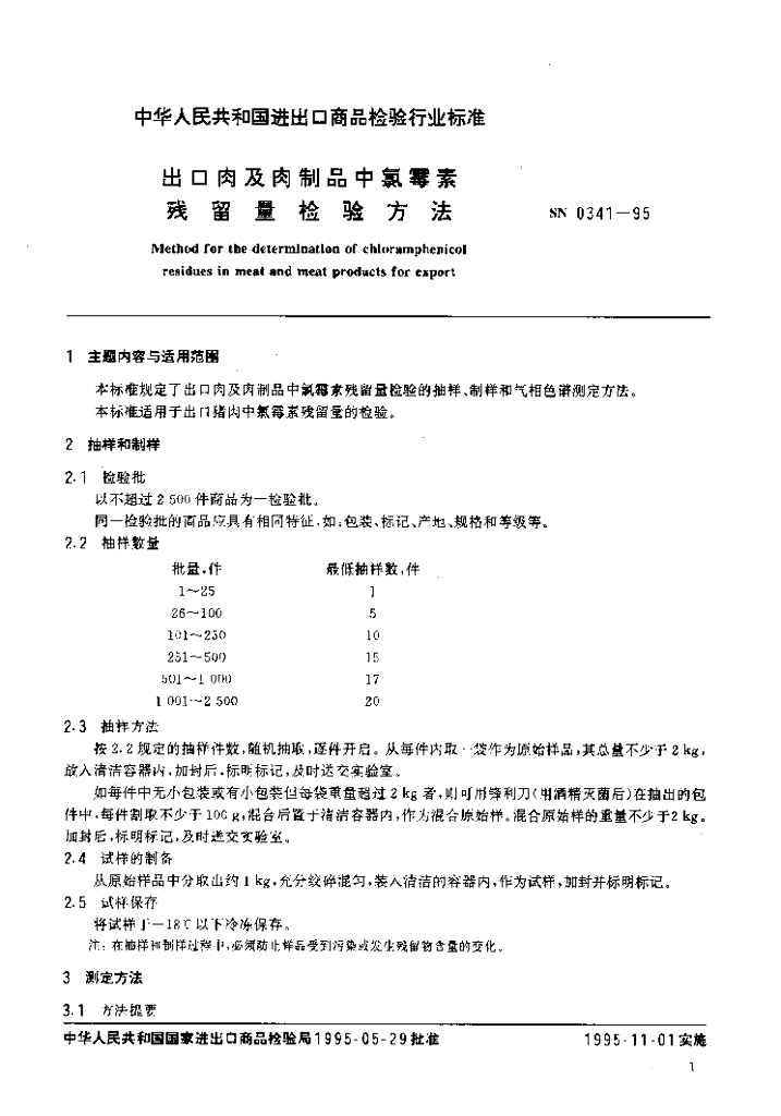 SN 0341-1995 出口肉及肉制品中氯霉素残量检验方法