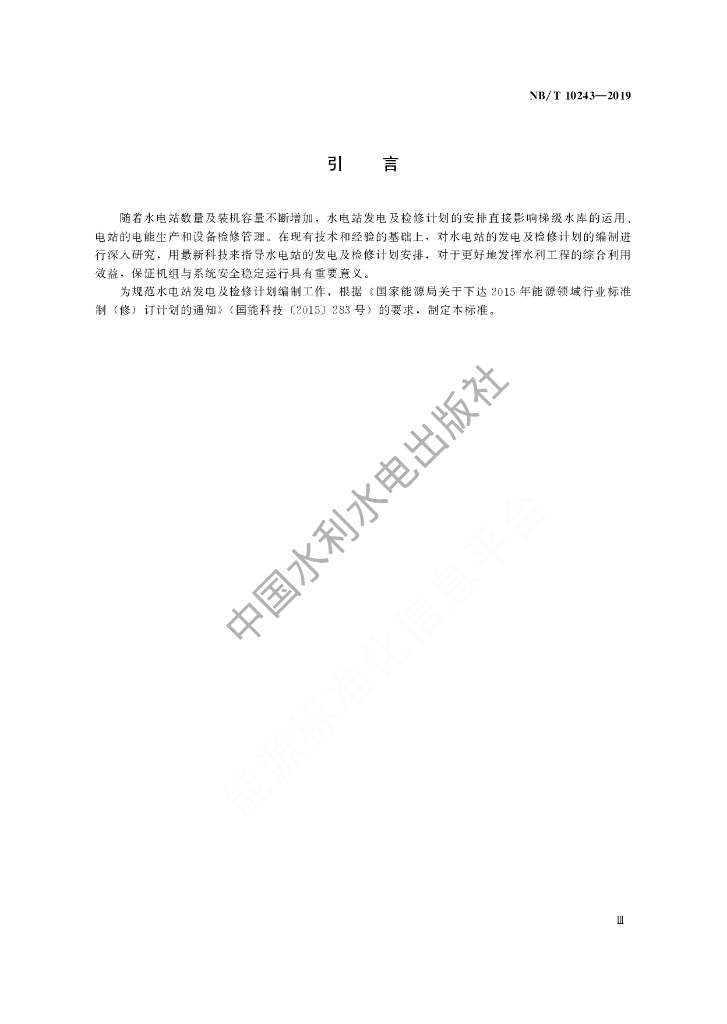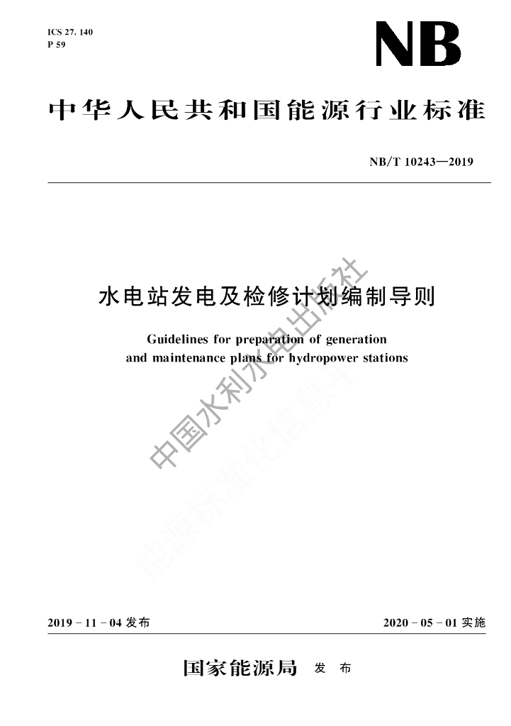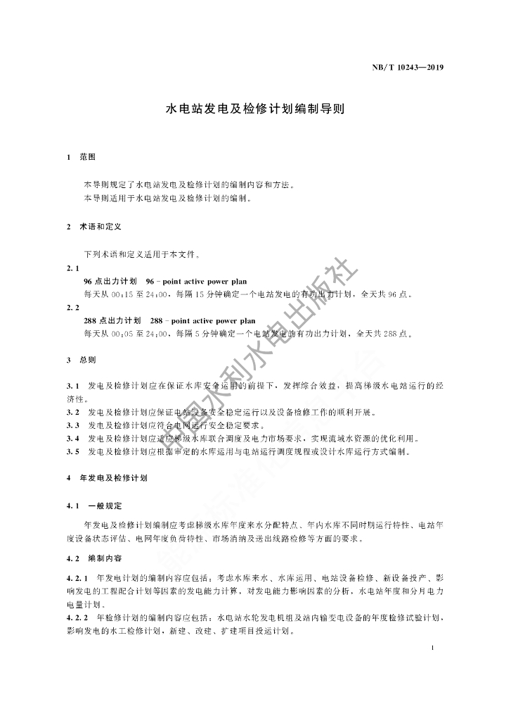 NB/T 10243-2019 水电站发电及检修计划编制导则