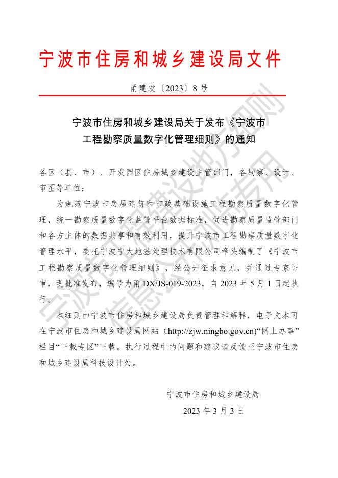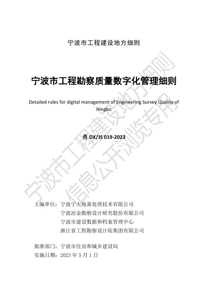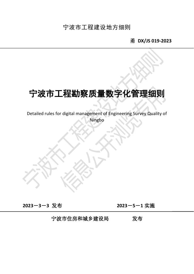 甬DX/JS 019-2023 宁波市工程勘察质量数字化管理细则