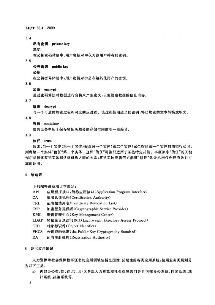 LD/T 30.4-2009 人力资源和社会保障电子认证体系 第4部分:证书应用管理规范
