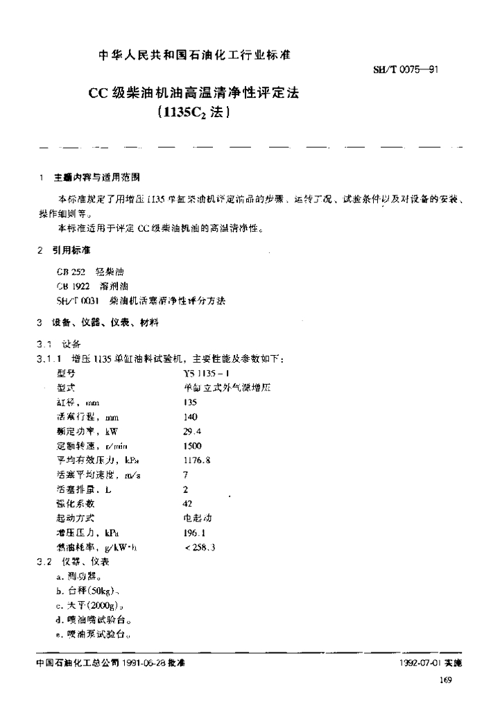 SH/T 0075-1991 CC级柴油机油高温清净性评定法(1135C2法)
