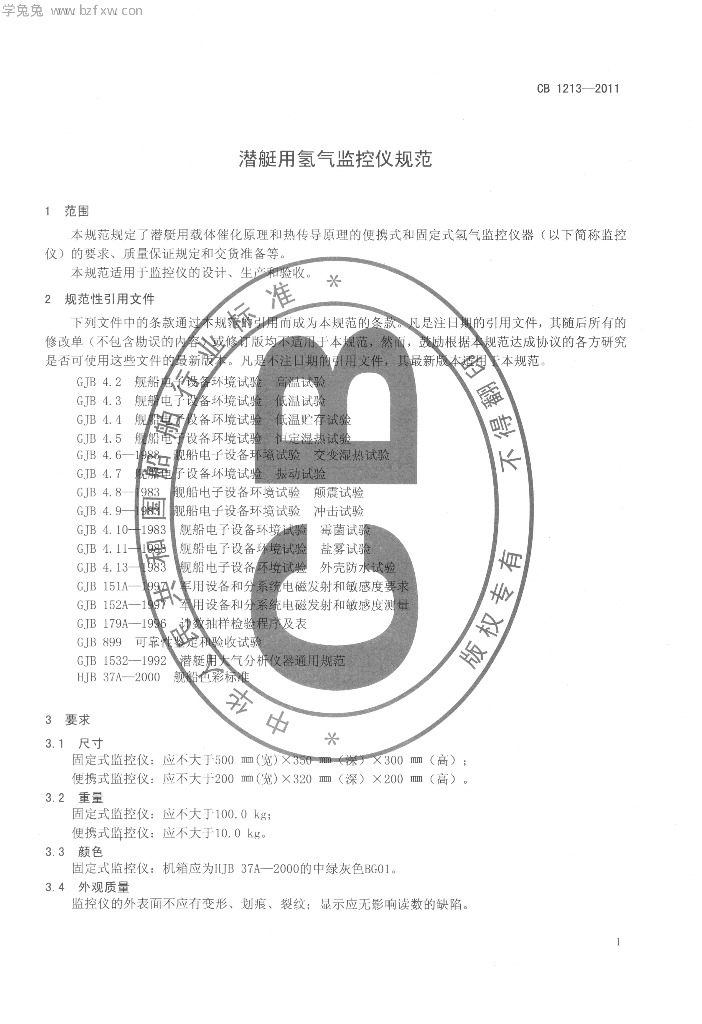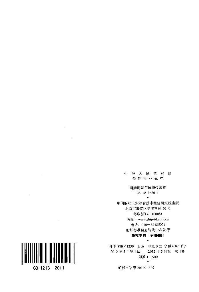 CB 1213-2011 潜艇用氢气监控仪规范