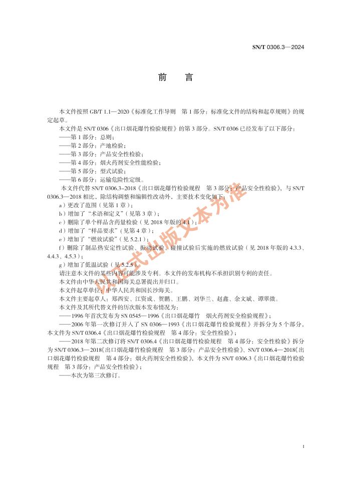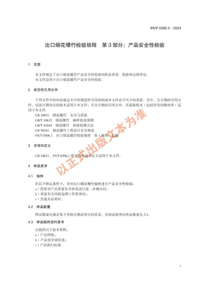 SN/T 0306.3-2024 出口烟花爆竹检验规程 第3部分:产品安全性检验